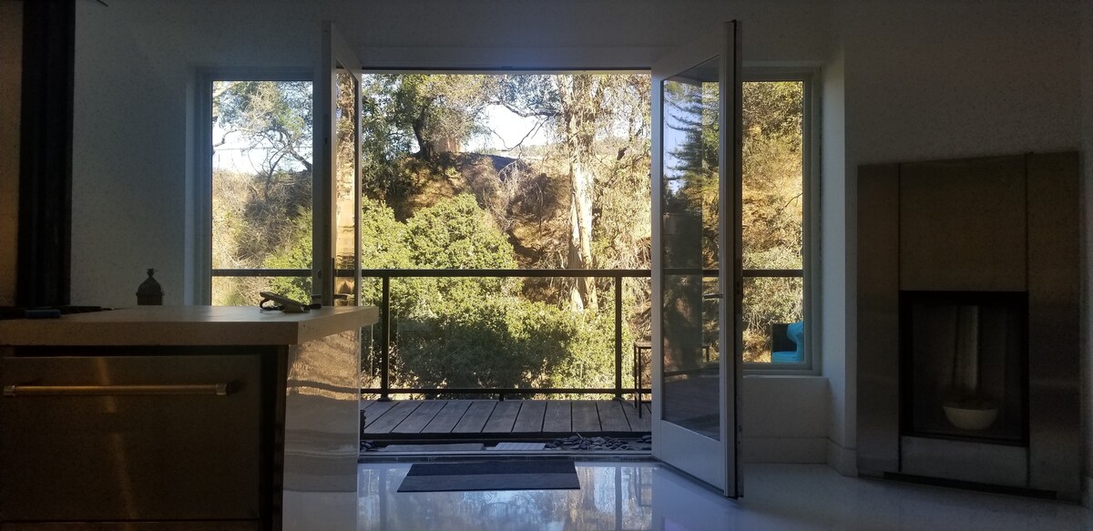 Détendez-vous dans cet espace calme et élégant. Les Oakland Hills sont remplies de randonnées incroyables, cet emplacement est idéal pour des excursions d'une journée à Napa (35 miles), San Francisco (11 miles) ou Carmel (120 m). Idéalement situé pour le travail ou les loisirs. Ce concept ouvert de 2 chambres est une escapade paisible. Compte tenu de la conception ouverte - il n'y a pas beaucoup d'intimité entre les chambres, juste une grande bibliothèque diviseur de chambre n/w les chambres. Il y a quelques coins salon à l'extérieur et un toit vert aussi ! Et la recharge des véhicules électriques.