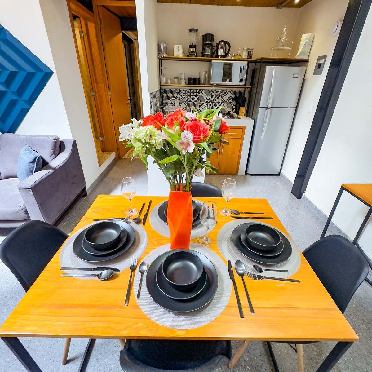 Élégant appartement niché au cœur du centre historique. Séjournez dans un appartement à deux rues du Zocalo et à cinq rues du temple de Santo Domingo de Guzmán, profitez de beaux couchers de soleil depuis votre terrasse privée. Séjournez dans un bâtiment de 1900 avec des équipements modernes, des matelas en mousse à mémoire de forme, la climatisation dans les chambres, Internet haut débit, une télévision avec des chaînes internationales, une plaque à induction, des prises USB, un lave-linge séchant.