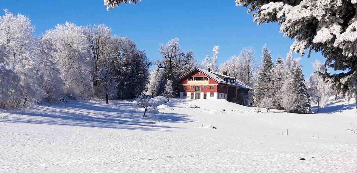 Chalet en bois moderne avec vue fantastique sur toute la vallée et dans les superbes Alpes autrichiennes. 3 étages au charme super confortable, situé au-dessus de Schwarzenberg et à 5 minutes en voiture de la station de ski de Bödele. La maison est située à environ 15/20 minutes en voiture de certaines des meilleures stations de ski de la région comme Mellau/Damüls, à environ 35/40 minutes de la meilleure et plus grande destination de ski d'Autriche, l'Arlberg, qui est reliée via Schröcken/Warth par une liaison directe en téléphérique.