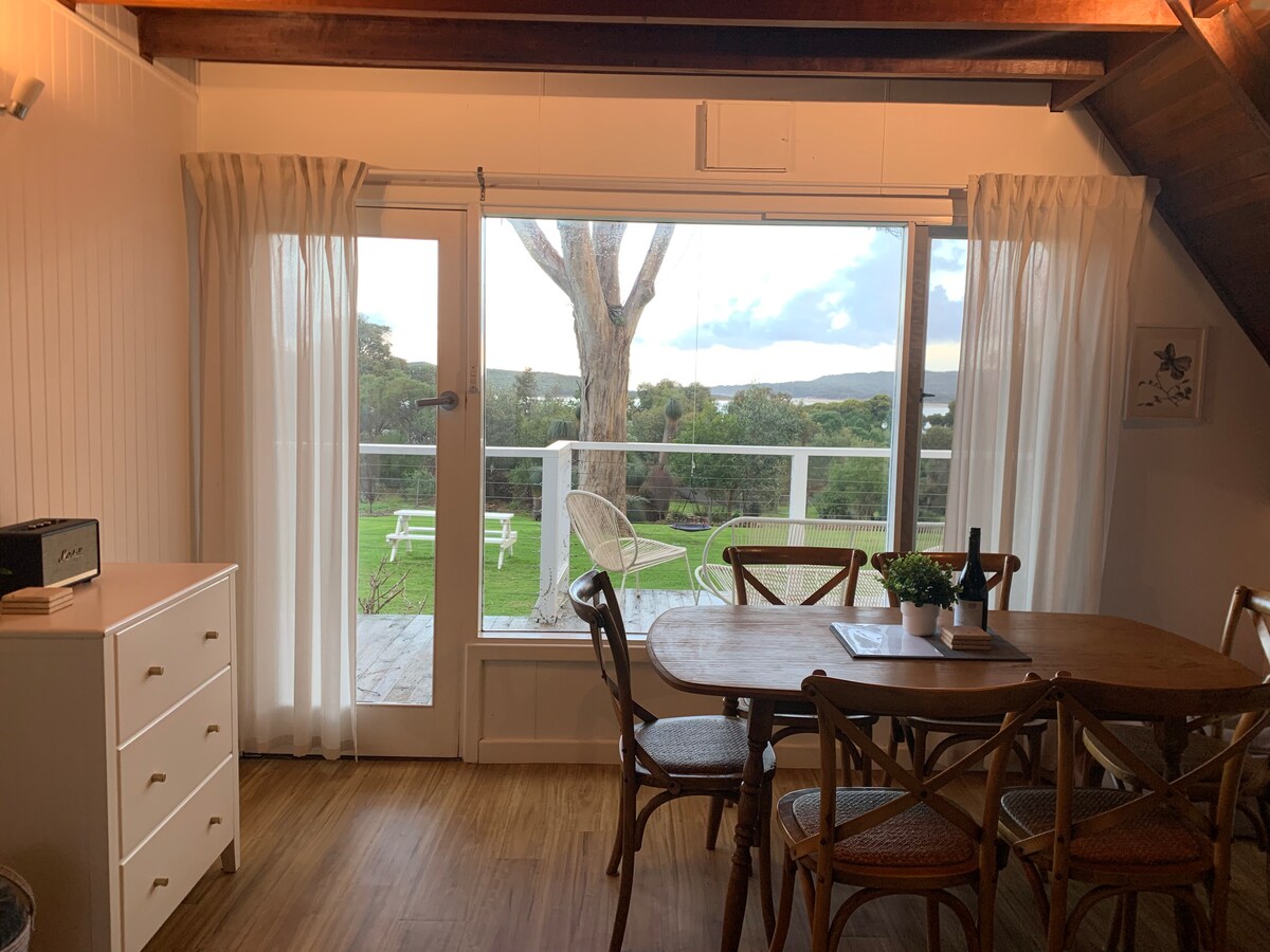Vous profiterez d'une vue imprenable sur la péninsule de Nalluki, Ocean Beach et Wilson Inlet. Séjour ouvert avec des portes coulissantes en verre de 4 m menant à un grand balcon avec des sièges pour 4 personnes et un barbecue. Le salon comprend un feu de bois pour les mois les plus frais, une télévision connectée et des canapés confortables. La chambre dispose d'un lit King Size surélevé donnant sur plus de 3 m de portes coulissantes en verre donnant sur une vue imprenable. La salle de bain attenante, y compris la baignoire, la douche et les toilettes détachées. Ce chalet ne vous décevra pas !