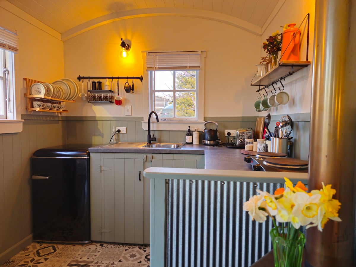 Éloignez-vous de tout et installez-vous dans ce magnifique havre de verger de campagne à seulement 25 minutes de Timaru, Fairlie ou Geraldine. Vos wagons spécialement construits sont nichés dans un cadre privé au sein de la propriété d'un acre. Les propriétaires vivent à proximité dans une église en pierre transformée. Un petit déjeuner léger, sans frais, est disponible sur demande.