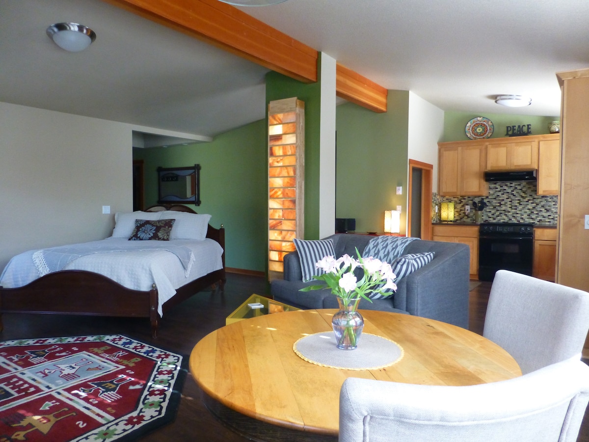 Notre petit STUDIO « boîte à bijoux » donne sur deux ruisseaux d'eau douce clairs et frais, des plages de sable, des mares résiduelles, des falaises en couches, la forêt fantôme, et est entouré d'une forêt nationale. Il dispose de : cuisine complète, salle de bain, lit queen size, lit gigogne double (idéal pour les enfants mais peut accueillir un adulte). Il a été entièrement rénové pour en faire notre escapade de rêve ! Neskowin a un bon vin/épicerie/marché sur place. Veuillez vous référer aux photos pour voir le lit gigogne double + dernière photo pour l'emplacement sur l'autoroute US 101.
