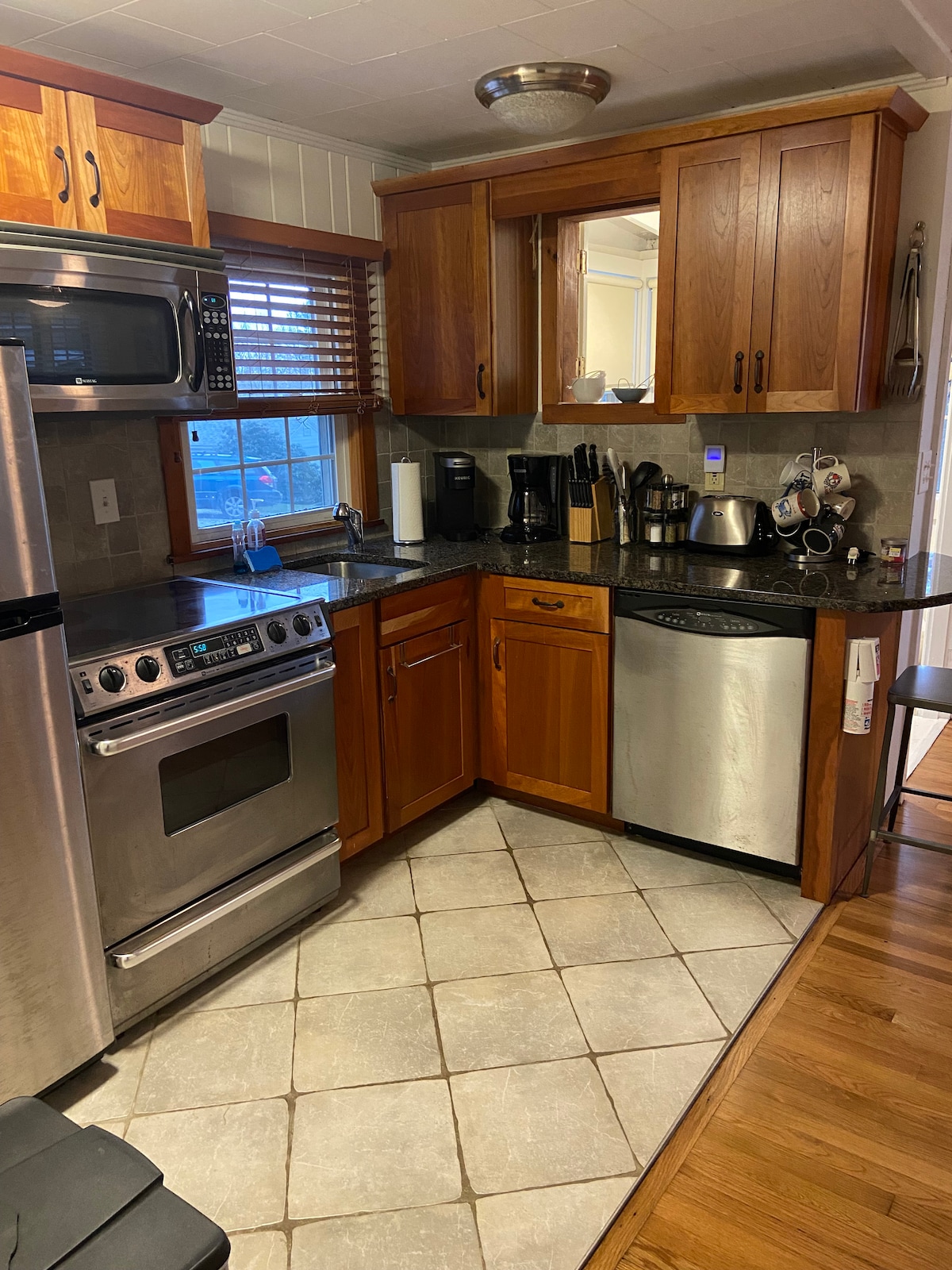 Cette maison de 3 chambres et 2 salles de bain est entourée de grands pins et de verdure. Elle dispose d'un porche paisible, avec un espace extérieur et un foyer, parfait pour s'asseoir et se détendre avec un verre de vin à la main ou une bière de fabrication locale. Cet espace est situé dans une rue calme, juste à côté de la route 1 à Wells. À environ un mile de Wells Beach, à distance de marche de plusieurs restaurants : Mike's Clam Shack, Varano's, The Steak House et Congdon's pour ne citer que quelques favoris populaires.