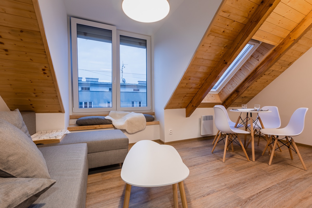 Cet hébergement unique en son genre offre un design élégant inspiré du minimalisme et du confort maximal en même temps. Les hauts plafonds, les climatiseurs et les stores créent un cadre agréable et aéré pour la détente. L'appartement est situé dans un quartier calme d'Olomouc au bord de la rivière Morava, mais à seulement quelques minutes du centre historique. Un jardin privé et des équipements de qualité, au lieu d'une télévision, un projecteur, soulignent l'accent mis sur la paix, la concentration et la vraie détente.