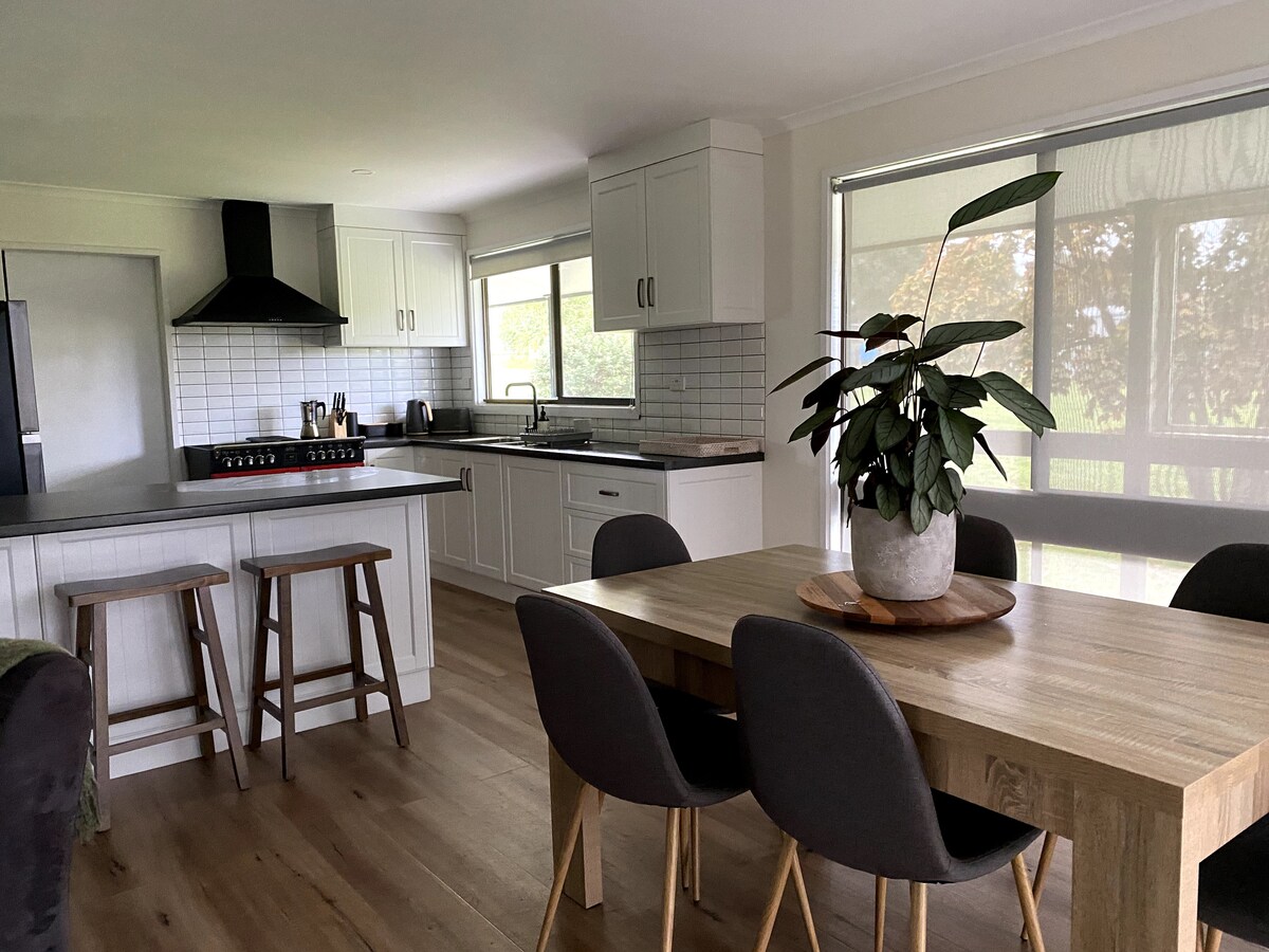 Bienvenue à Wild Brumby Retreat Tawonga South, à proximité de la belle ville de Mount Beauty et située au pied des collines de Falls Creek, surplombant le mont Bogong. Notre retraite a été soigneusement aménagée pour accueillir un week-end de détente pour les couples et pour accueillir confortablement une famille de 5 personnes. Avec une cuisine entièrement équipée, des installations de cuisson séparées pour les personnes atteintes de la maladie cœliaque (sans gluten), une télévision 55" et une PS4, une connexion Wi-Fi gratuite, 2 chambres (5 couchages), des jeux, des livres et bien plus encore, votre prochain séjour a tout pour plaire.