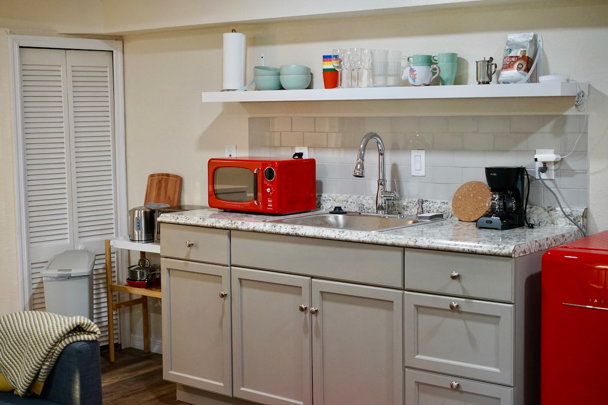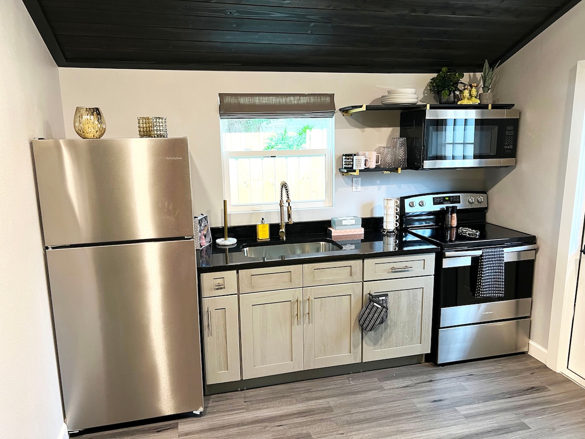 Venez profiter de l'expérience The Green Room dans le magnifique centre-ville d'Orlando à Thornton Park. Côtoyez des artistes et des interprètes célèbres ! Cet espace élégant est exactement ce dont tout le monde a besoin avant un grand spectacle ou juste une promenade au lac Eola. Tant d'équipements dans ce studio branché ! Endormez-vous sur notre lit confortable en mousse à mémoire de forme sous les plafonds chaleureux en bois personnalisés. Vous pourrez vous détendre sur le canapé en regardant vos émissions préférées, prendre un verre sur le patio ou vous laver des parcs à thème avec une bonne douche !