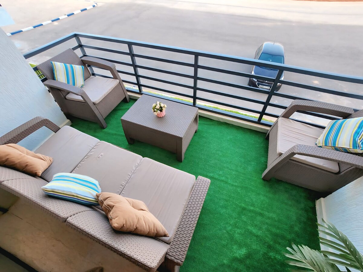 Cet appartement comprend une chambre spacieuse, une salle de bain moderne, et une cuisine entièrement équipée. Vous y trouverez également un salon marocain traditionnel, offrant une ambiance accueillante, ainsi qu'un salon moderne avec des meubles contemporains, parfait pour les moments de détente. Une grande terrasse privée vous attend, avec un petit salon extérieur idéal pour profiter du beau temps. La terrasse dispose d'un fauteuil suspendu pour une expérience de relaxation unique.