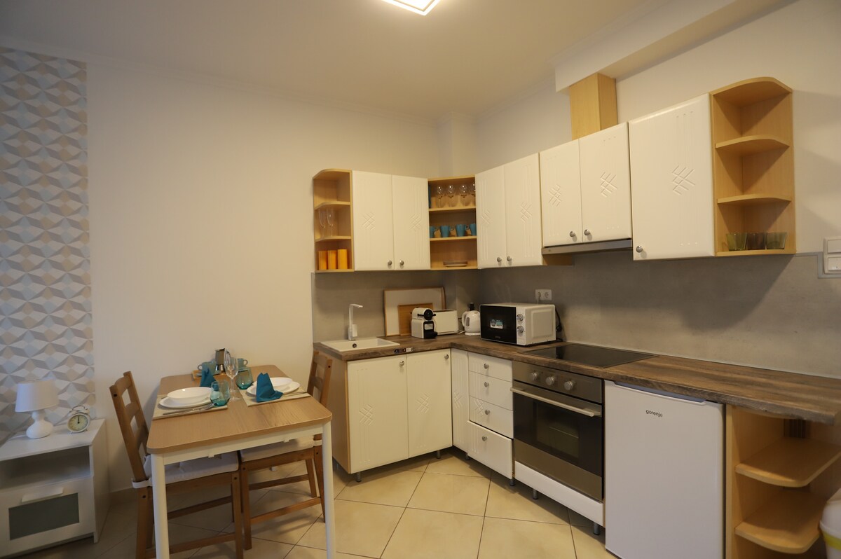 Appartement tout neuf. Dans la chambre il y a un lit double, dans le salon il y a un canapé gigogne. Parfait pour 1 ou 2 personnes. L'appartement est à 10 minutes à pied du centre-ville. La zone autour de la maison est une zone de stationnement sans frais de sécurité. L'hôpital est à 6 minutes à pieds, mais le centre ville est facilement accessible à pieds, confortablement 15 minutes. Il me fait un réel plaisir d'accueillir des visiteurs de l'étranger et de les guider pendant leur séjour dans cette magnifique ville. Je m'occupe bien de l'anglais, et je travaille comme du tourisme.