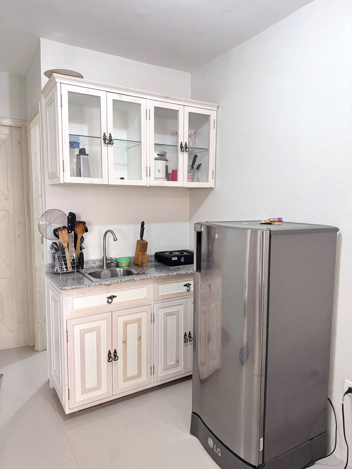Oubliez vos soucis dans cet espace spacieux et serein. 1 à 6 personnes peuvent s'adapter confortablement dans cette maison. fournit : Réfrigérateur wi-fi cuisinière à induction cuiseur à riz bouilloire électrique smart tv ustensiles de cuisine chambre 1 : lit queen size avec climatisation de type split 1 hp chambre 2 : lit superposé avec lit queen sur le bas et lit simple sur le dessus avec climatisation portable de 1 hp.