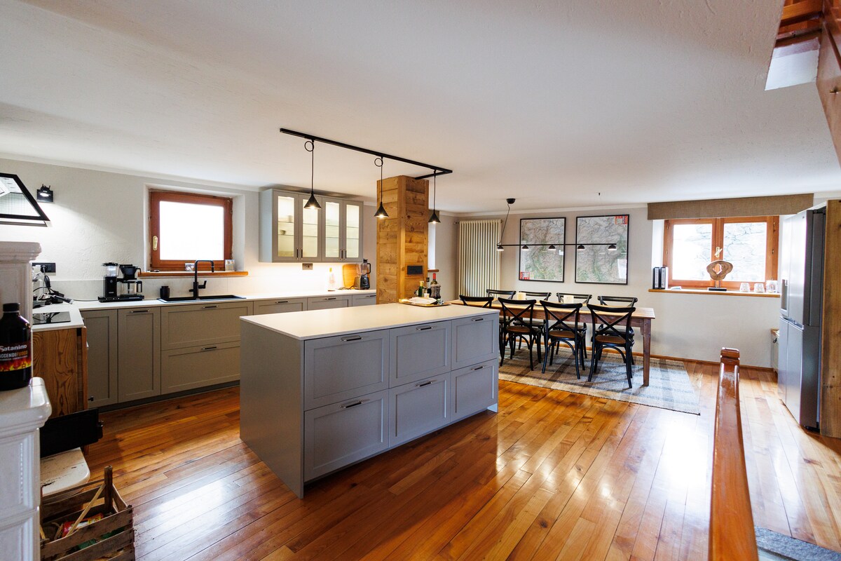 Erleben Sie Zermatt stilvoll in unserer neu und luxuriös renovierten Maisonette-Wohnung direkt am historischen Kirchplatz. Die ca. 85 m² große Ferienwohnung bietet zwei großzügige Schlafzimmer mit Doppelbetten sowie ein weiteres Zimmer mit einem ausziehbaren Bett. Zwei moderne Bäder mit Dusche und WC sorgen für Komfort, ebenso wie die voll ausgestattete Küche. Der offen gestaltete Wohn- und Essbereich überzeugt mit hochwertigen Designer-Möbeln und viel Platz zum Entspannen.