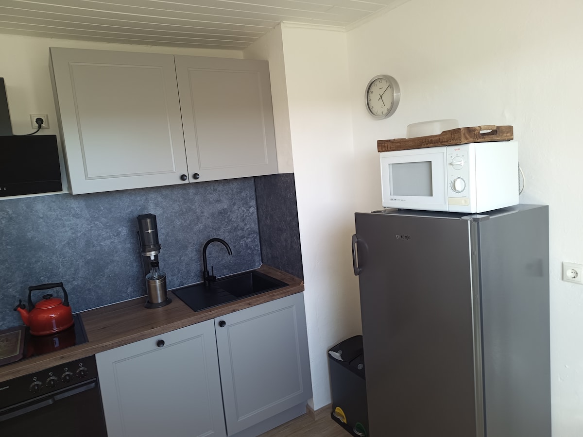 Votre logement se trouve au rez-de-chaussée d'une ferme construite vers 1900. La cour avec jardin est à votre disposition pour un usage commun. Sur environ 75 m², une cuisine-salon spacieuse et moderne, une salle de bains et deux chambres offrent beaucoup d'espace pour se détendre. La connexion rapide à la fibre optique permet également un travail confortable. La cuisine est équipée d'une plaque à induction, d'un lave-vaisselle, d'un réfrigérateur, d'une bouilloire et d'une machine à café.