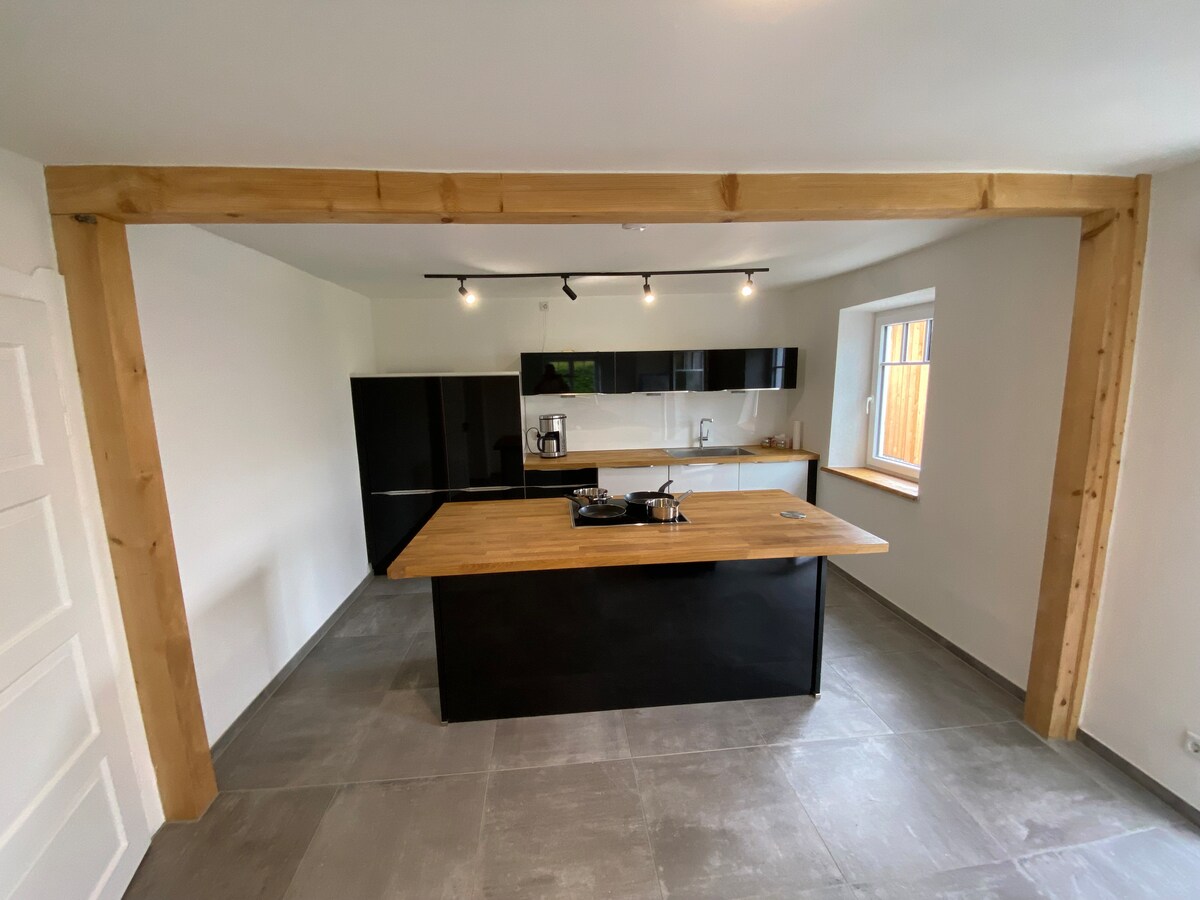 Cet appartement entièrement rénové est en excellent état et s'étend sur le rez-de-chaussée surélevé d'une ferme construite dans les années 1930, qui a été remise à neuf avec une grande attention portée aux détails. Tout l'appartement avec son atmosphère individuelle est à votre entière disposition. Ici, on peut respirer tranquillement ! La ferme est presque isolée (un voisin direct), entourée de prairies et de forêts dans la belle région de l'Allgäu oriental.