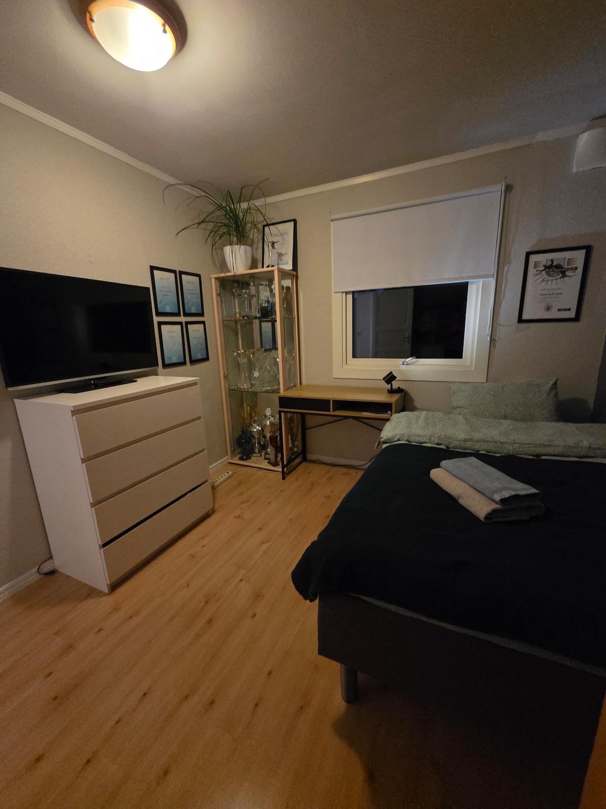 Appartement idéalement situé dans maison individuelle dans un quartier de villa populaire. Entièrement meublé, entrée privée, câbles chauffants dans tout l'appartement et télévision/internet. L'appartement se compose d'un séjour spacieux, d'une cuisine récemment rénovée, d'une salle de bains avec WC, d'une douche et d'un lave-linge et d'une chambre séparée. À moins de 10 min à pied de la place Bragernes, avec une riche sélection de boutiques et restaurants, du centre commercial et de la plage populaire de la ville de Bragernes. À courte distance de la gare, de l'université et des grandes zones de randonnée sur le terrain.
