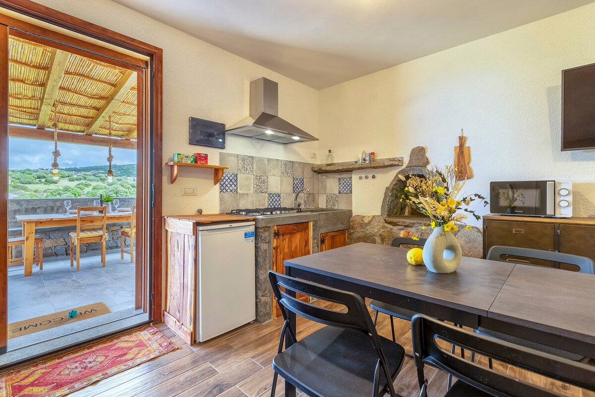 Il s'agit d'un ancien et caractéristique Stazzo bien restauré et rendu habitable, fonctionnel et équipé de tous les services ( lave-linge, sèche-cheveux, douche extérieure, mobilier d'extérieur, télévision. Très beaux et agréables les deux espaces extérieurs pertinents à la maison. La pergola extérieure avec glycine et table pour le petit déjeuner, embrassées par le premier soleil du matin, tandis que sur le côté opposé, une sorte de patio naturel avec le sol en pierre et quelques oliviers, ombragent le grand espace utilisable pour déjeuner et diner.