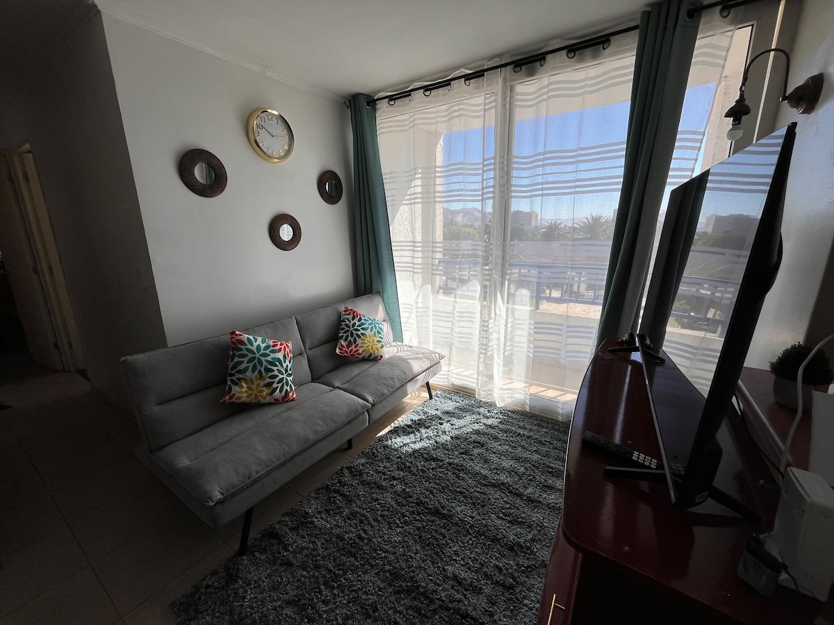Profitez de vos vacances près de belles plages. À moins d'une heure de Bahía Inglesa. Cet endroit unique a son propre style. Copropriété très calme idéale pour se reposer. À quelques pas du Casino, des supermarchés, des pharmacies, de l'hôpital, du stade régional et du parc Schneider. Très bon secteur, conciergerie 24 h/24. Appartement neuf, entièrement meublé, entrée indépendante et parking privé.