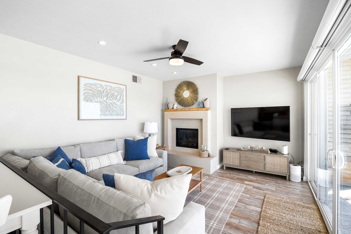 Rest Ashore est l'endroit idéal pour votre escapade de rêve à la plage. Notre appartement haut de gamme rénové sur mesure a tout : plafonds à poutres apparentes, cheminée, cuisine et salles de bains magnifiques, mobilier neuf et cuisine entièrement équipée. Au premier étage (sans escalier) et orienté plein sud pour les journées très chaudes, ce qui le rend parfait pour faire un barbecue sur le patio ouvert. Prenez quelques pas par la porte d'entrée pour profiter de kilomètres et de kilomètres de vue dégagée sur l'océan et la plage. Endormez-vous au doux bruit des vagues.