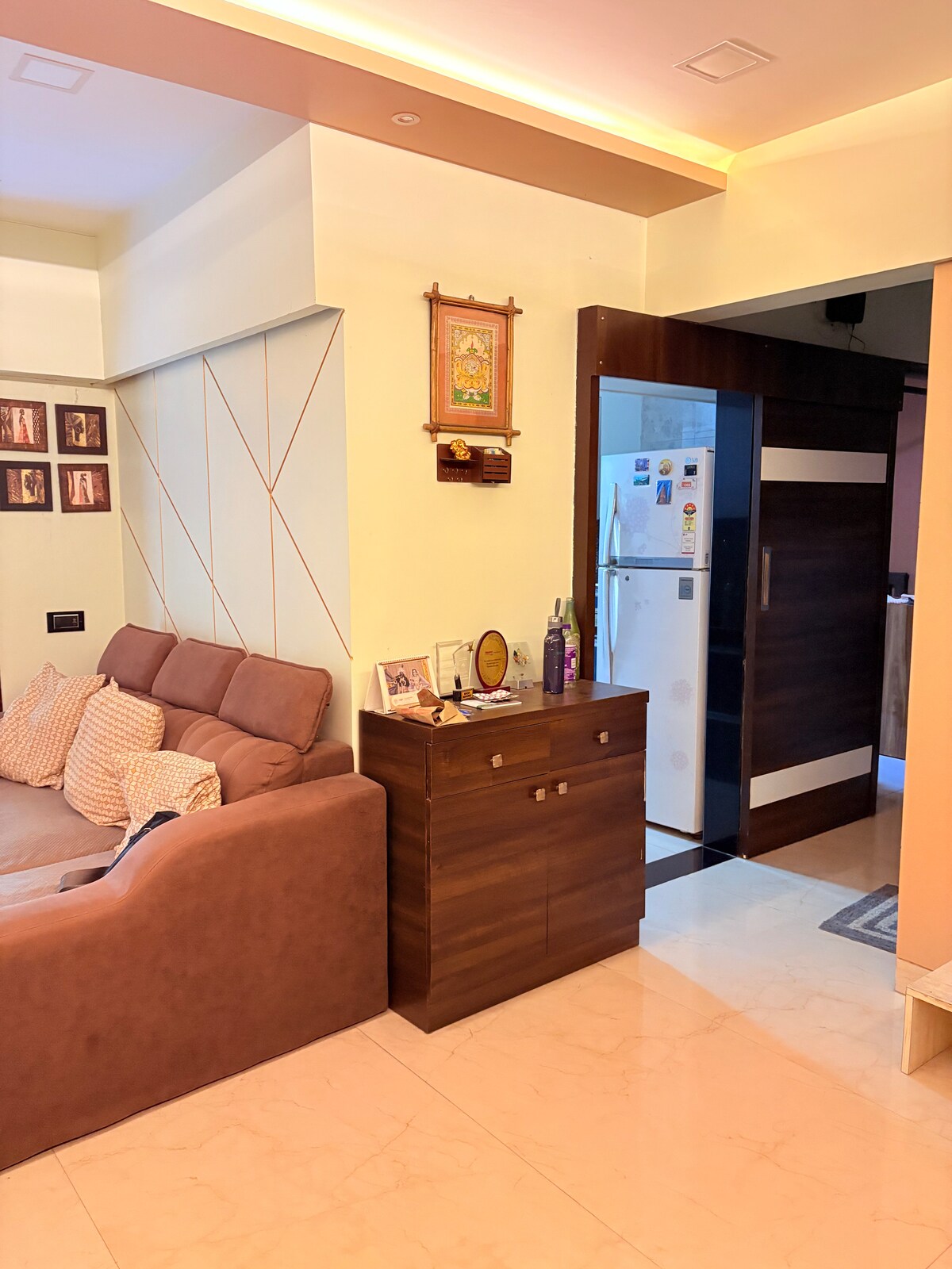 Avez-vous déjà imaginé emmener la maison de vos rêves en vacances avec vous ? SHREE SAIDEEP HOLIDAY HOMES vous invite à échanger la chambre d'hôtel habituelle contre un séjour de luxe dans notre appartement 1 BHK bien meublé, parfaitement situé dans la région pittoresque et paisible de Palghar. Plus qu'un intérieur magnifiquement conçu, c'est un espace adapté aux animaux de compagnie et à la famille, idéal pour un séjour relaxant et de bons moments en famille.