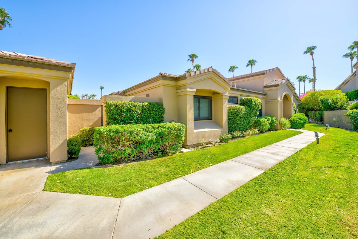 Escapade dans le désert dans une communauté privée avec vue sur la montagne, équipements de villégiature et Wi-Fi 1G rapide. ★ « Magnifique, idéalement situé, et exactement comme il avait l'air en ligne. » ☞ Patio avec barbecue et salle à manger à l'extérieur ☞ Accès au complexe : tennis, salle de sport, terrain de golf, piscine, pickleball ☞ Plusieurs téléviseurs intelligents (salon + chambres) ☞ Cuisine entièrement équipée ☞ Garage et allée (4 voitures) ☞ 1 Go de Wi-Fi + espace de travail ☞ Lave-linge/sèche-linge sur place ☞ Climatisation + chauffage 》10 minutes → DT Palm Desert (cafés, magasins, restaurants) 》→ Coachella à 20 minutes