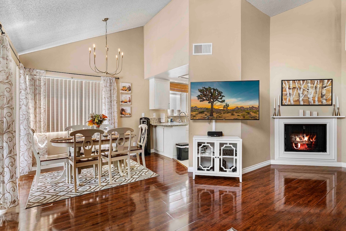 Retraite spacieuse de 3 chambres avec piscine. Cette location magnifiquement aménagée dispose de 3 chambres, 2 salles de bains rénovées et d'une oasis dans l'arrière-cour avec une piscine privée, un spa et un jacuzzi. La cuisine extérieure comprend un gril à gaz et une plaque chauffante Blackstone. Détendez-vous dans l'espace de vie couvert avec des ventilateurs de plafond, un système audio et une télévision 70". À l'intérieur, profitez de sièges de théâtre moelleux, d'une télévision 75"avec son surround et d'un accès transparent à l'arrière-cour. À seulement 10 minutes de Palmdale, c'est l'escapade rêvée !