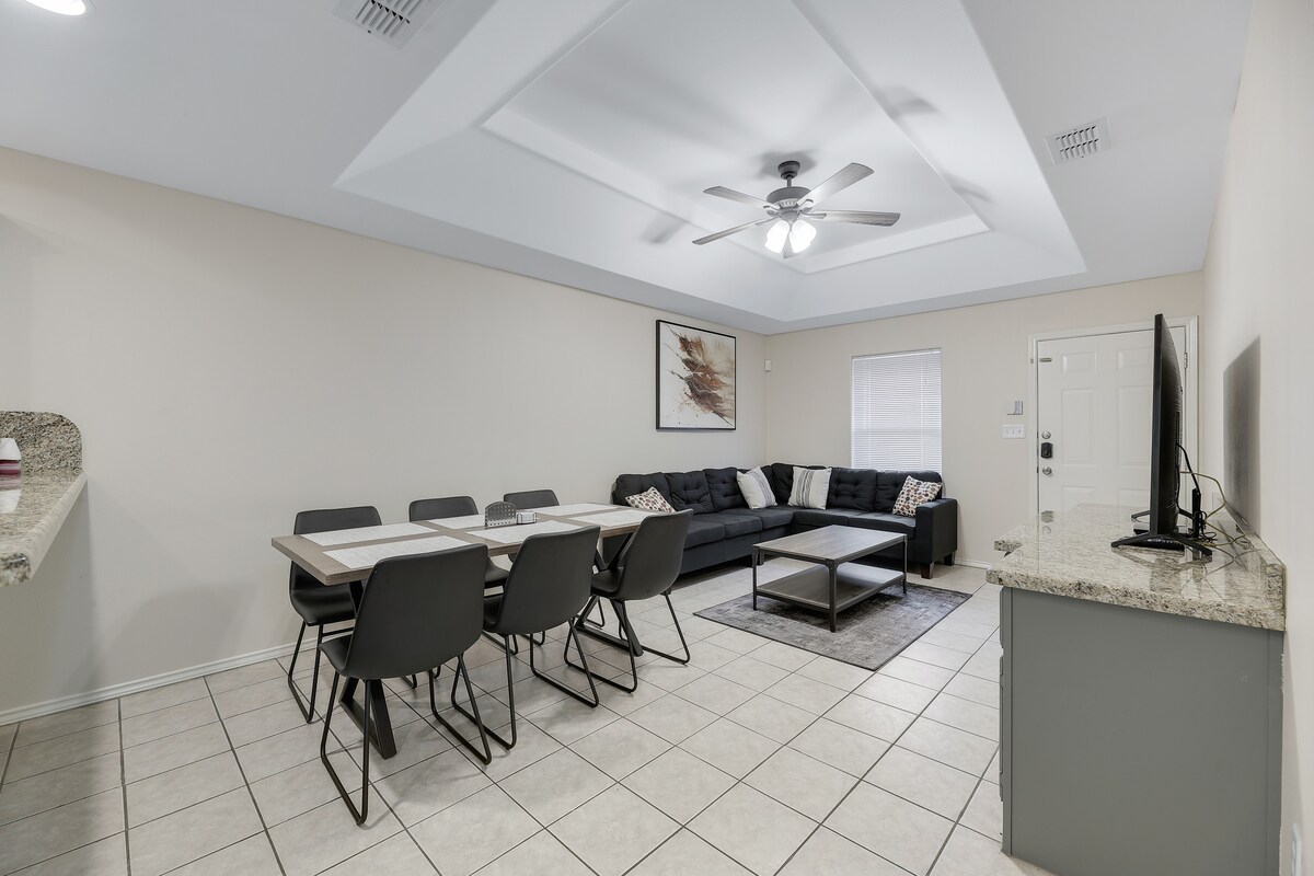 Bienvenue dans notre maison confortable de trois chambres. Parfait pour les familles ou les petits groupes. Niché dans un quartier calme, notre maison offre une cuisine entièrement équipée, un salon spacieux, une arcade (salle de jeux) et un jardin privé pour se détendre. Nous sommes à quelques minutes de H-E-B, Walmart, un ER indépendant, Starbucks et d'autres restaurants locaux. Il est facile d'explorer la région ou de rendre visite à de la famille ou des amis qui pourraient vivre à proximité.