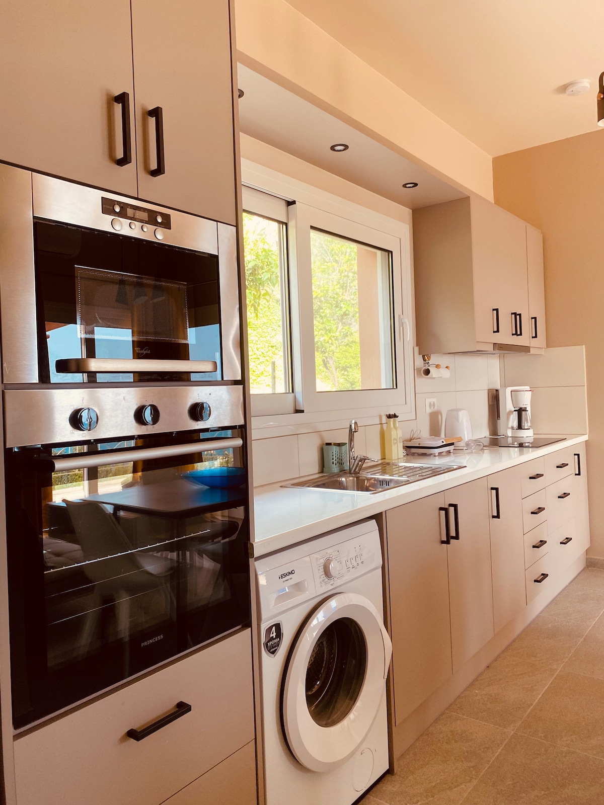 Katerina Mare, à Lourdas Beach, offre une expérience de location unique, à seulement 5 pas du rivage. Profitez de vues époustouflantes, des sons apaisants des vagues et des couchers de soleil inoubliables. Restaurants et mini-market à 1 minute. Détendez-vous dans le jardin entouré de verdure. Accès pratique à la plage via escaliers. Pas besoin de voiture, bus local vers zones populaires accessibles à pied.