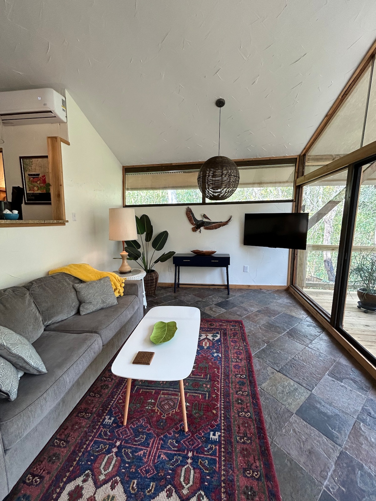 Détendez-vous lors de cette escapade unique et tranquille. Ce petit bijou est un paradis pour les amoureux de la nature niché dans les bois sur une superficie avec intimité. Asseyez-vous sur le porche avant et regardez les carpes nager dans un étang situé directement à côté de la terrasse. Admirez les magnifiques jardins plantés pour les oiseaux et les papillons. Il y a un foyer pour profiter juste à côté du porche avant et un fumoir à œufs verts pour cuisiner. Ce chalet est un plan d'étage à aire ouverte avec des puits de lumière partout avec beaucoup de lumière naturelle
