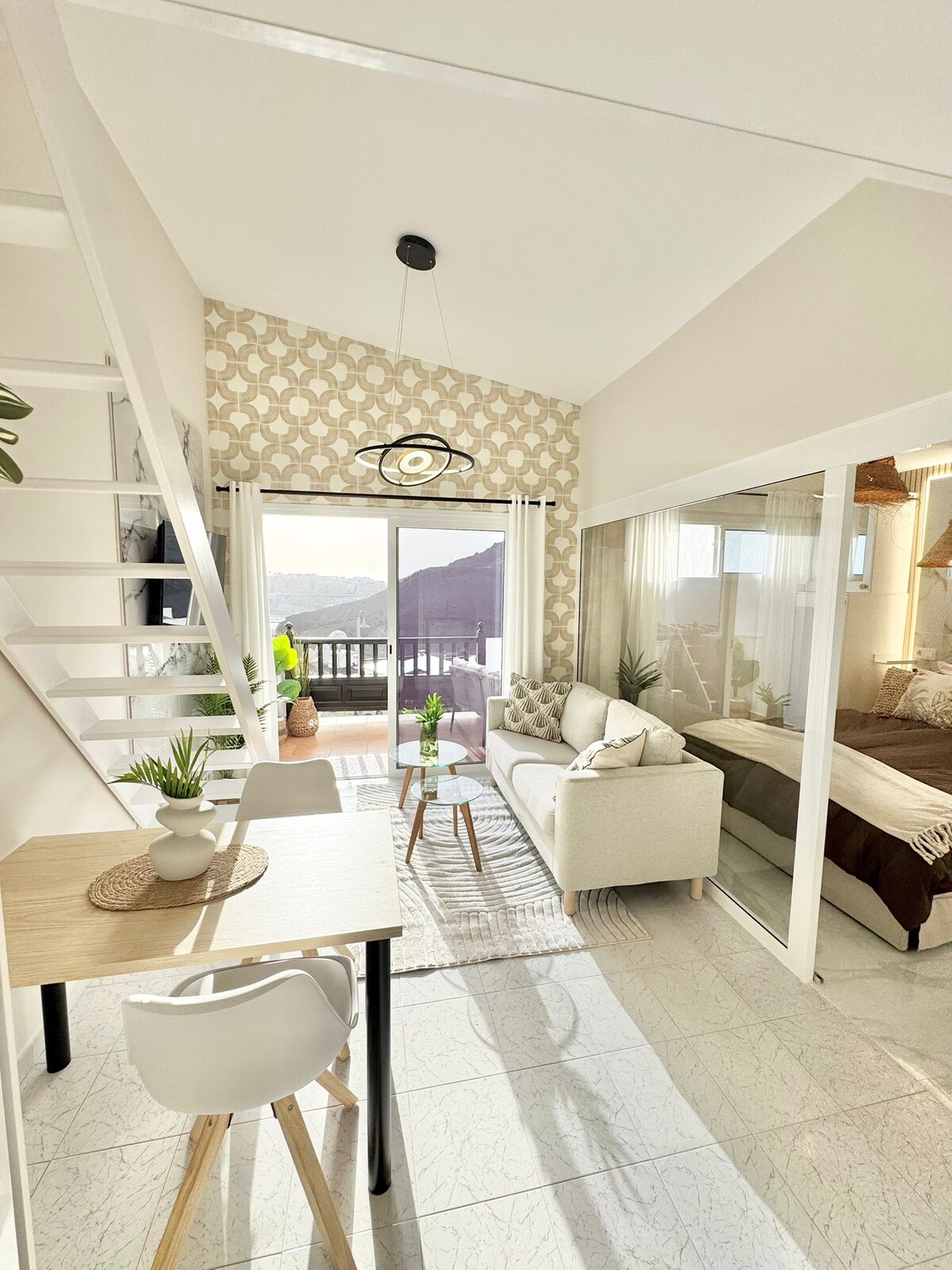 Cet appartement exclusif et lumineux a été récemment rénové avec des matériaux de haute qualité. Il est situé dans le complexe Los Canarios à Patalavaca, offrant une grande piscine et une vue spectaculaire sur Anfi del Mar et l'océan Atlantique. L'appartement se compose d'une cuisine entièrement équipée et d'un coin salon, d'une chambre double, d'un lit simple en mezzanine et d'une salle de bain moderne. La propriété dispose d'un joli patio à l'entrée et d'un grand balcon avec une vue fantastique sur l'océan.