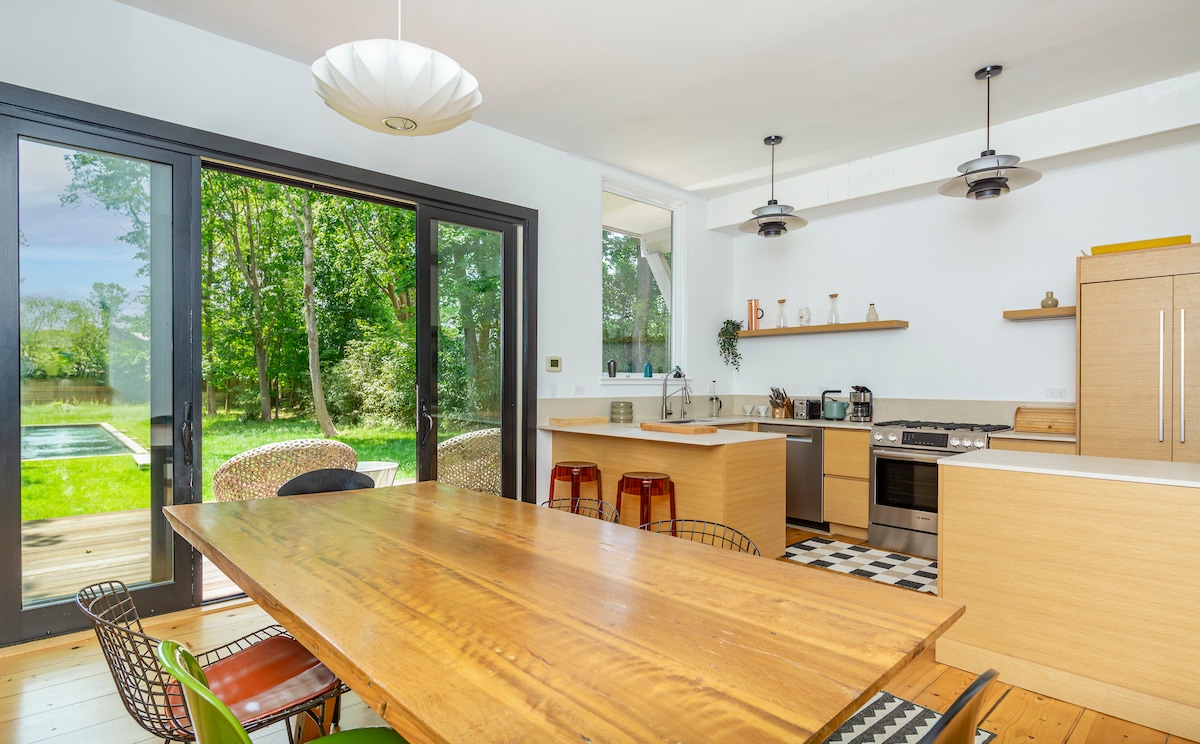 La maison de rêve d'un architecte et d'un décorateur d'intérieur ! Cette maison est un hangar à bateaux historique construit à la fin des années 1890 avec des mises à jour modernes. Au milieu de Greenport Village, à distance de marche de la gare, de l'arrêt Jitney et de Shelter Island Ferry, ainsi que des meilleurs restaurants, vignobles, bars et plages de North Fork. Maison de deux chambres avec cheminée au rez-de-chaussée, douche extérieure (non fermée) et patio extérieur magnifiquement aménagé avec barbecue et salle à manger.