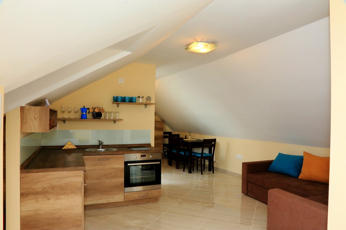 We warmly welcome you to our charming apartment, located just a short walk from the heart of Pécs, in a quiet and friendly neighborhood. With two separate rooms and a bright, American-style kitchen-living area, it offers a truly homey feel. Both the kitchen and the bathroom are fully equipped. The private parking space by the entrance, fast Wi-Fi, and our lovely little courtyard are all here to make your stay as comfortable as possible.