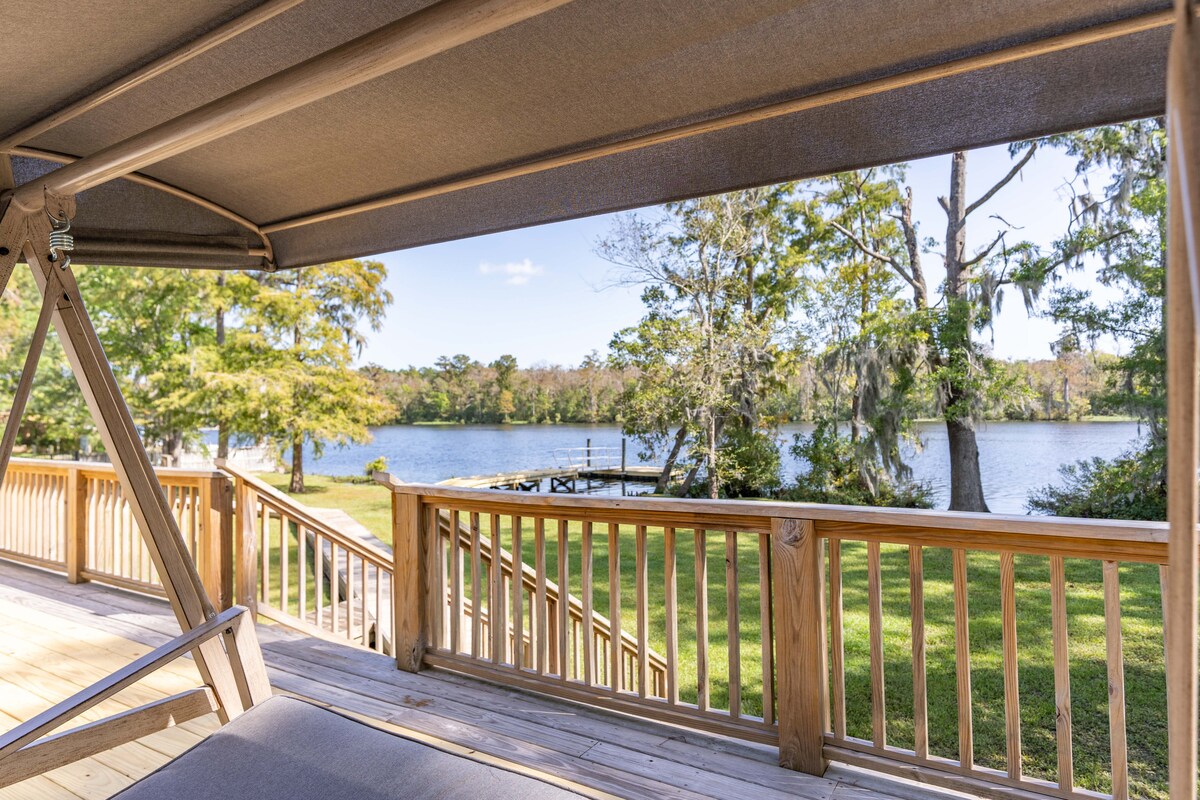 Détendez-vous dans une maison au bord de l'eau entourée par les sons paisibles de la nature. Les deux niveaux disposent de grandes portes vitrées coulissantes donnant sur des balcons avec une vue magnifique sur la rivière. Profitez d'un café gratuit en écoutant les oiseaux, détendez-vous sur des meubles confortables en regardant vos émissions préférées sur des téléviseurs intelligents, savourez des repas faits maison dans une cuisine entièrement équipée et communiquez avec votre équipage grâce à une large sélection de jeux et de livres. Et si vous voulez un peu d'aventure, empruntez deux kayaks pour faire un tour !