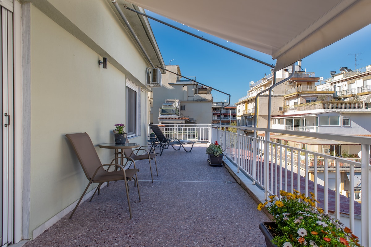 Découvrez la magie de Thessalonique depuis notre confortable studio avec terrasse au cœur de la vieille ville ! Notre studio récemment rénové offre une vue imprenable sur la ville depuis notre terrasse. Dégustez une tasse de café le matin ou après une journée d'exploration, détendez-vous avec un livre ou un verre et regardez la ville prendre vie. Pas d'ascenseur, mais stationnement gratuit.