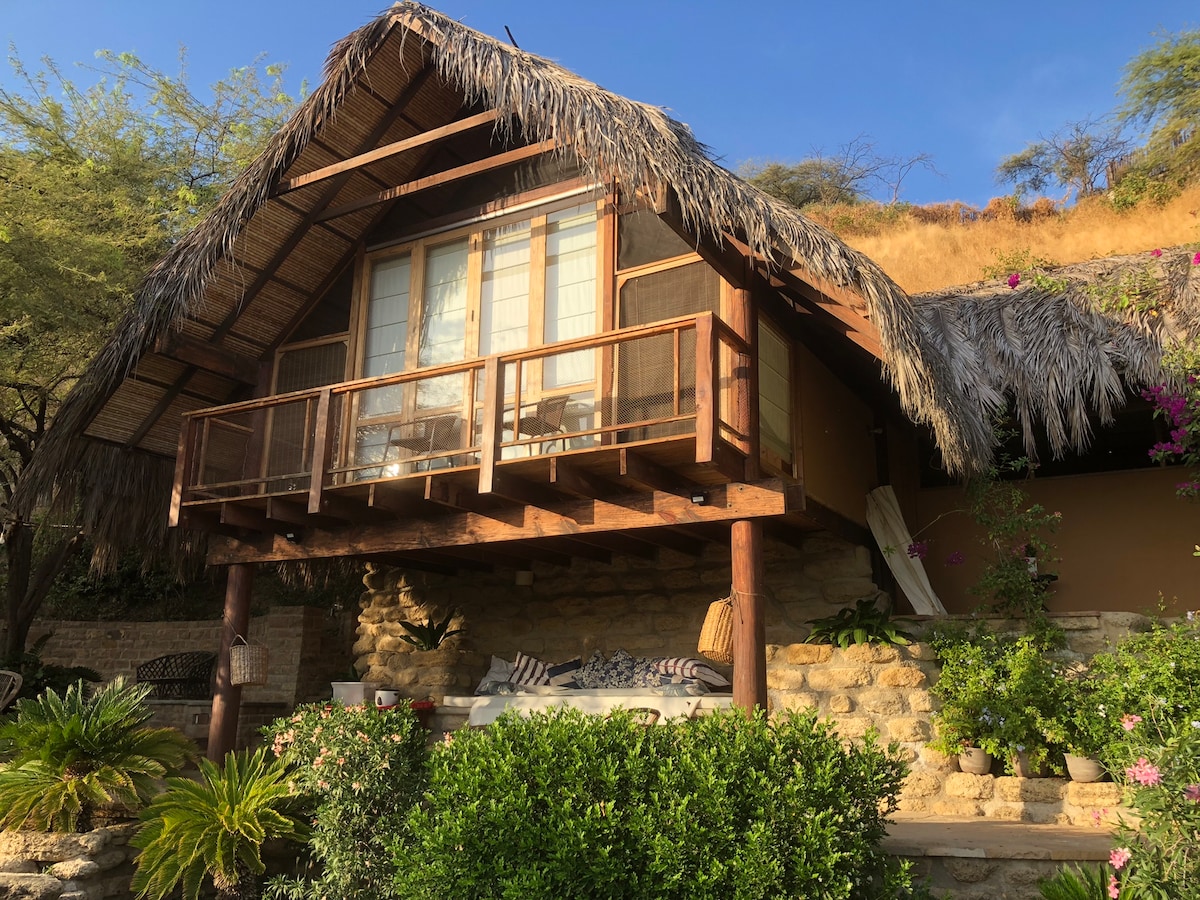 La suite est une grande chambre avec balcon, située dans un point haut à 300 mètres du point de surf de Mancora, avec accès à la piscine et à la terrasse et une vue imprenable sur la mer au-dessus des arbres. Elle est faite de matériaux naturels avec des finitions raffinées. La salle de bain est grande et belle. La suite est équipée d'une connexion Wi-Fi, de la télévision directe, d'un réfrigérateur, d'une chaudière et d'une cafetière. Des chambres supplémentaires sont disponibles dans la propriété en fonction du nombre de voyageurs. La capacité maximale est de 10.