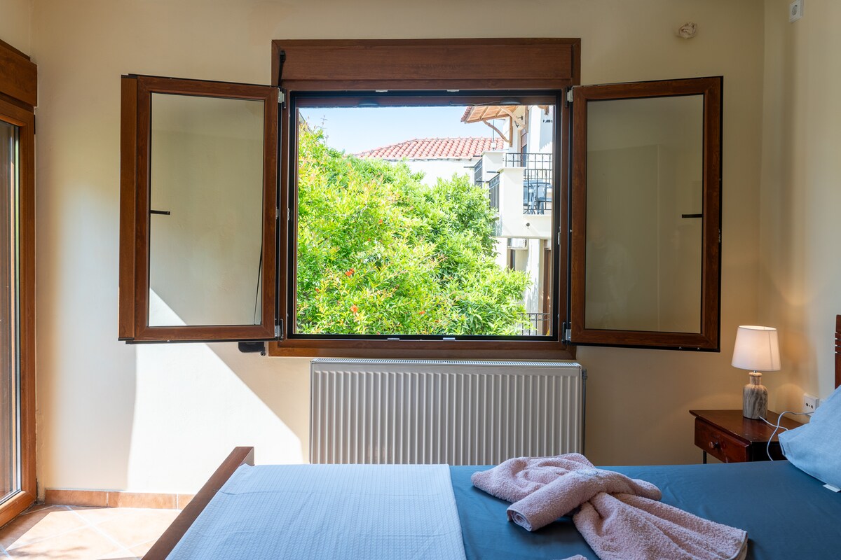 Profitez d'un agréable séjour dans ma paisible maison de 1 chambre pour votre voyage à Petra, Lesbos. La maison a été récemment rénovée et équipée avec AC, TV, cuisine entièrement équipée pour rendre votre séjour confortable. Vous pourrez toujours profiter du balcon, de la salle de bain privée, de la vue imprenable sur la mer. Notre maison est à moins de 5 minutes des restaurants, cafés, supermarchés et elle est située juste en face de la plage. Un emplacement idéal pour découvrir Petra, Lesbos, le meilleur moyen. Nous sommes impatient de vous accueillir !