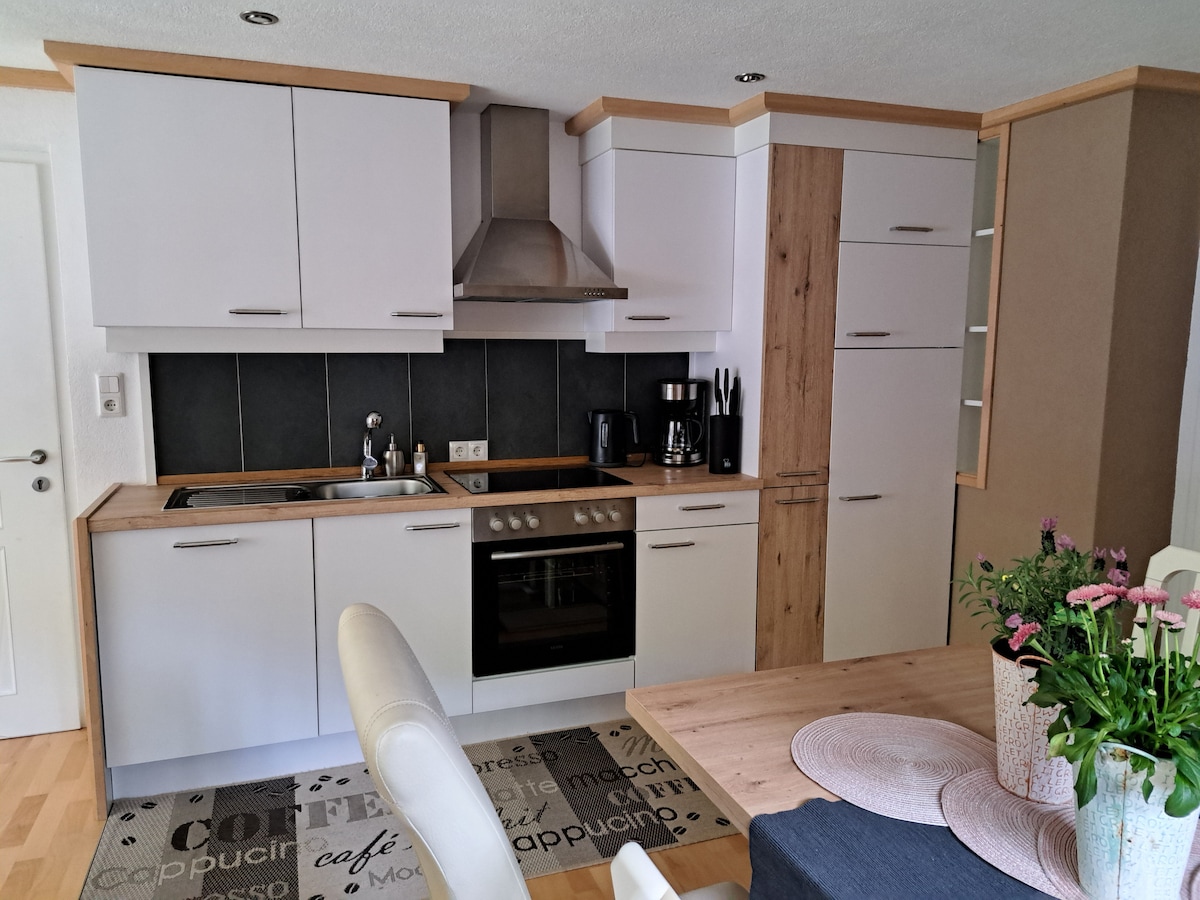 L'appartement calme et élégant est situé juste à la lisière de la forêt et invite à la détente. C'est le choix parfait pour tous ceux qui recherchent la détente et veulent profiter d'une vue magnifique sur les montagnes. Quelques randonnées et tours à vélo peuvent être effectués directement depuis le logement.