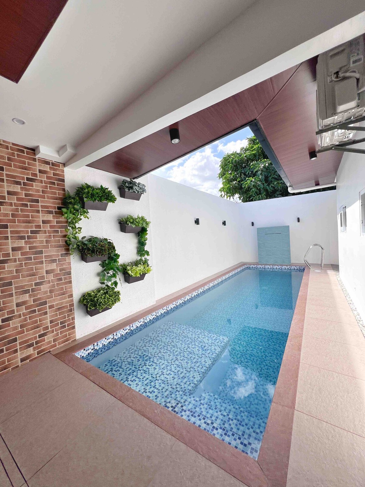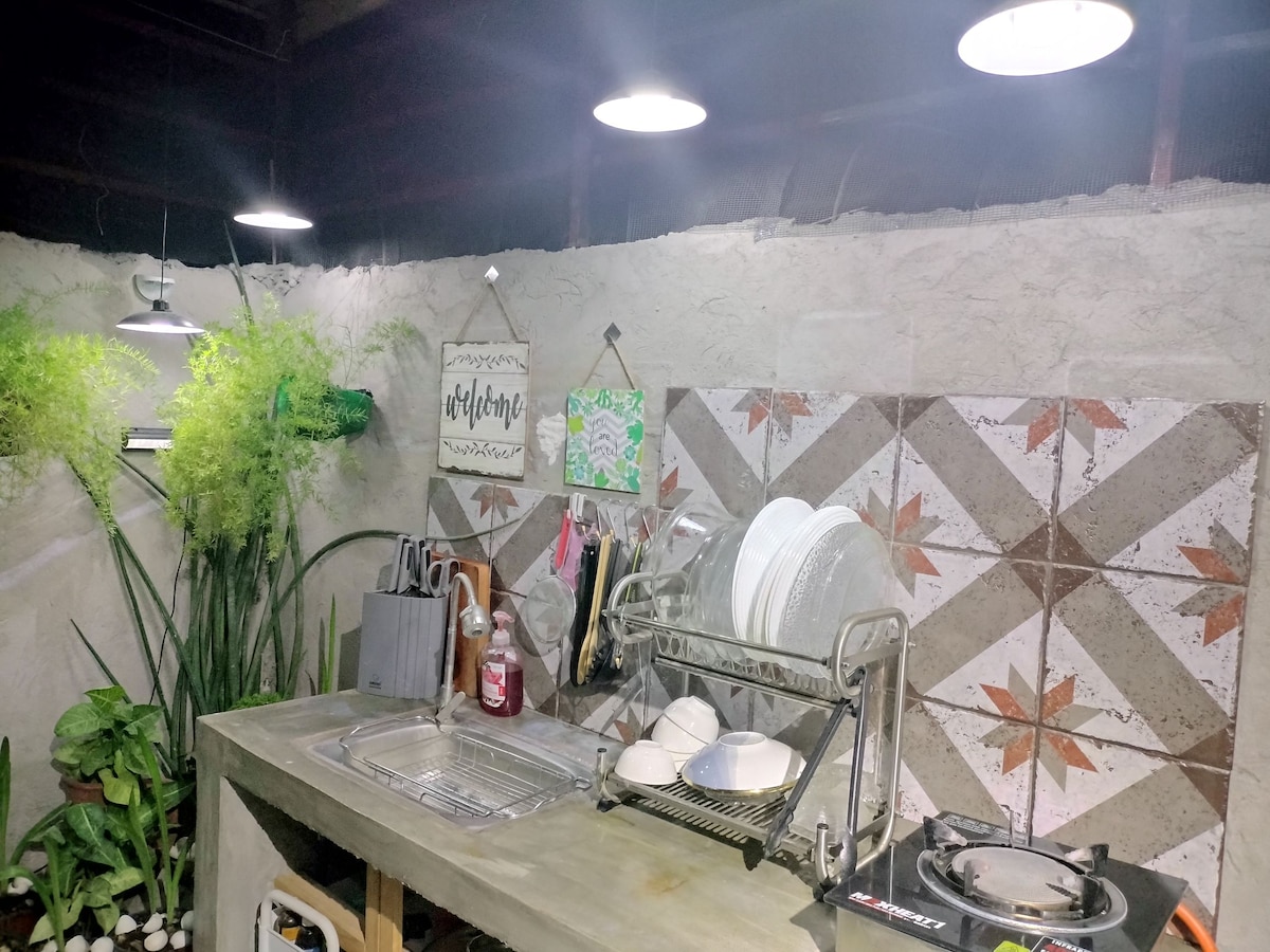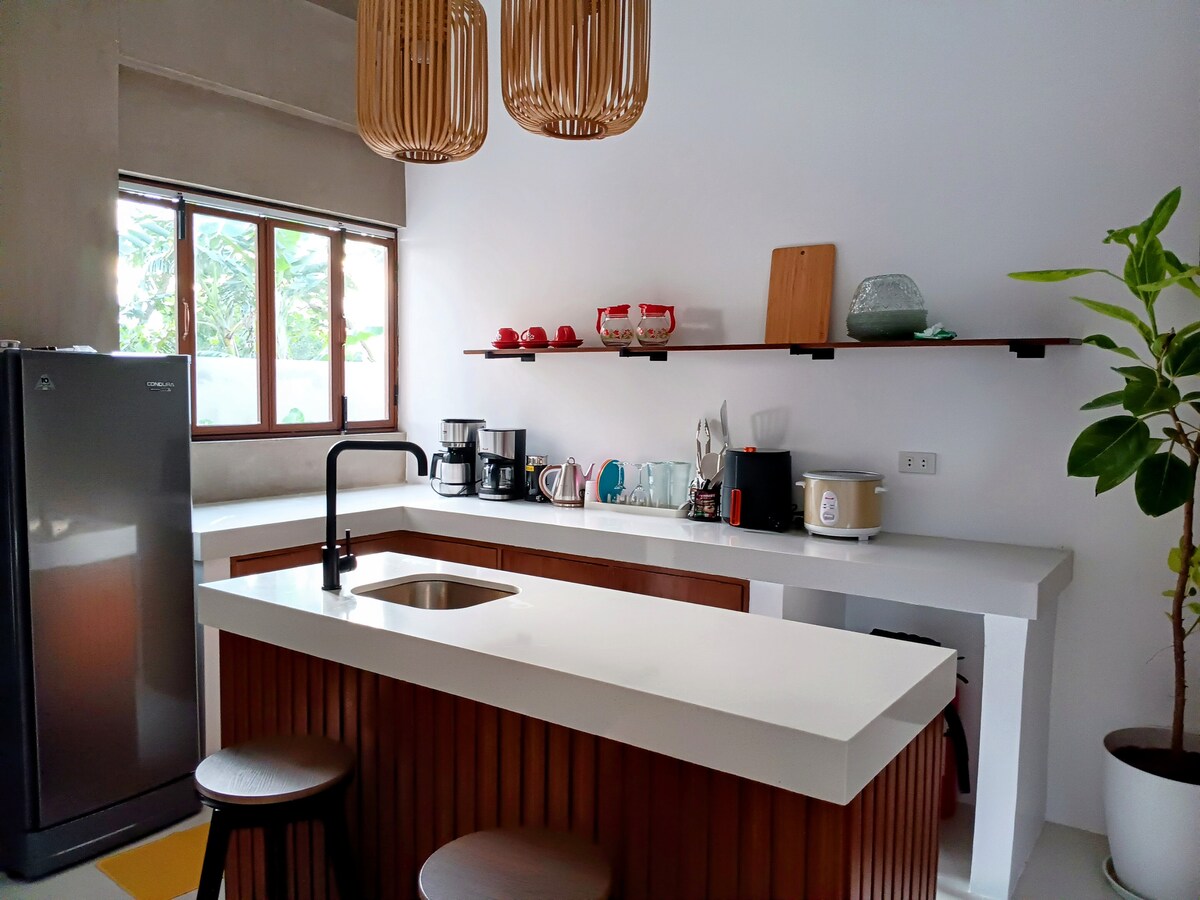 Faites une pause et détendez-vous dans cette propriété minimaliste de 100 mètres carrés. Notre petite maison est entièrement à votre disposition pour en profiter entre amis et en famille. Elle dispose d'une piscine de quarante-cinq centimètres de profondeur, l'autre moitié est de soixante centimètres pour que les enfants puissent nager. La propriété dispose d'une cuisine extérieure et d'un coin repas où vous pourrez vous détendre et regarder Netflix tout en mangeant. Il y a un bar extérieur pour profiter de vos boissons. La chambre dispose de 3 lits queen size, entièrement climatisée. Ce n'est pas un hôtel cinq étoiles. C'est un séjour à la maison.