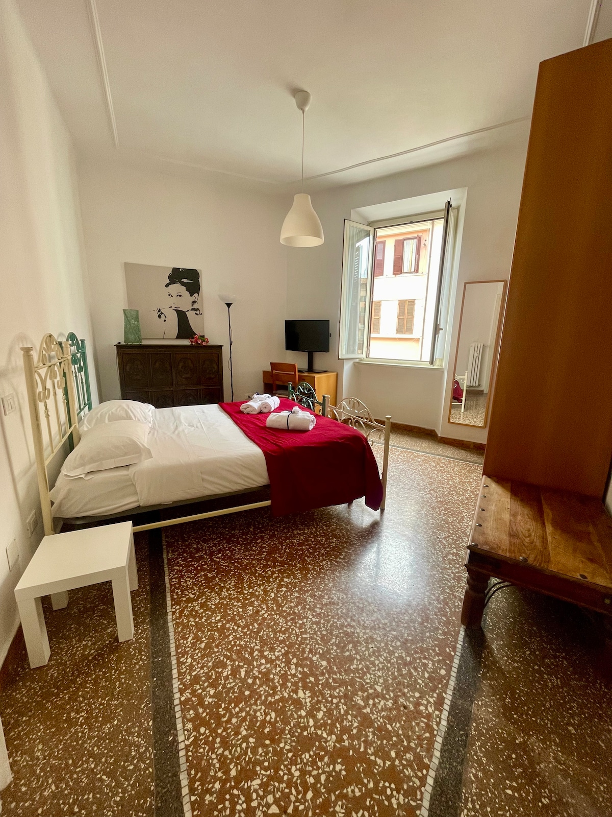 Authentique et caractéristique, au cœur du centre historique de Rome, Rione Regola, dans une position idéale pour visiter toute la ville à pied ou en transport en commun, l'appartement est situé dans un immeuble d'époque de l'une des rues les plus anciennes et les plus suggestives, entre la Piazza Navona (500 m), le Panthéon (1 km) et Campo de' Fiori (400 m) d'un côté de la rivière et Trastevere (800 m) et la basilique Saint-Pierre de l'autre (1 km)