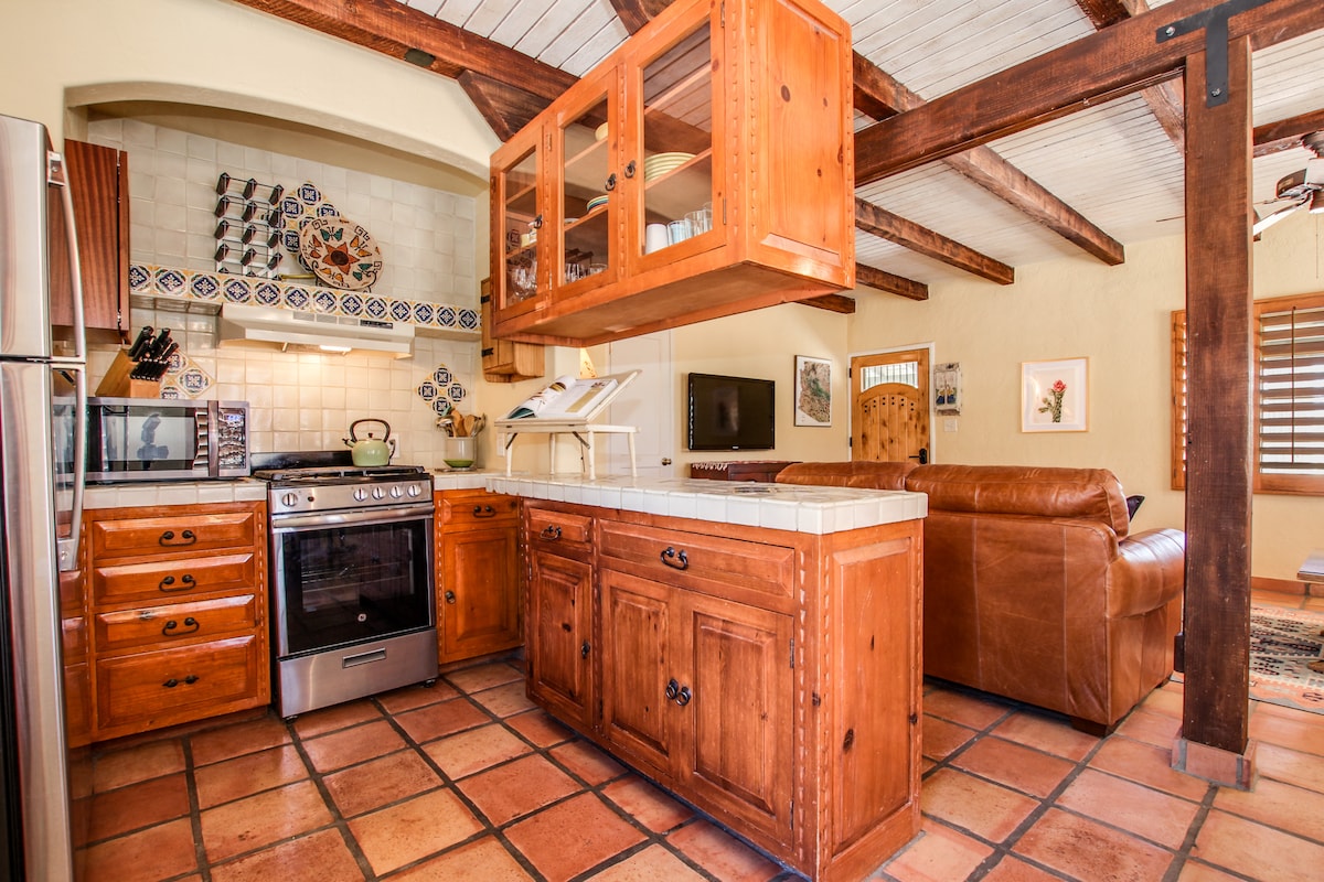Retirez-vous dans cette casita paisible d'une chambre à West Foothills, située sur une propriété pittoresque de 17 acres. Profitez d'un lit King Size, de la climatisation/chauffage, d'une cuisine complète avec eau RO, d'une machine à glaçons, d'un micro-ondes, d'une cuisinière/four, d'une télévision Roku de 65" avec 220 chaînes, d'une connexion Wi-Fi rapide, d'un lave-linge/sèche-linge dans l'unité et d'une table de jeu. ~74 m² de confort et de charme. À seulement 2 miles d'Ironwood Hill Dr depuis Silverbell Rd, à 6 miles de l'UofA. Impeccablement propre et accueillante, parfaite pour une escapade tranquille. Licence AZ TPT 21337578