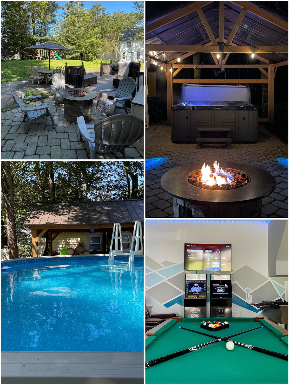 Luxury meets fun in our spacious Pocono chalet for 14. Enjoy the putting green or the deck with a private pool. Relax in the sauna, hot tub, and hammocks, or gather around the fire pit. Indoors offer poker, darts,basketball, pool, ping pong, foosball, skeeball, air hockey. With two living areas, a chef’s kitchen, and cozy bedrooms, there’s space for everyone. Minutes from ski slopes, waterparks, golf courses, and hiking trails—perfect for families, reunions, and friends’ getaway. EVcharger avail
