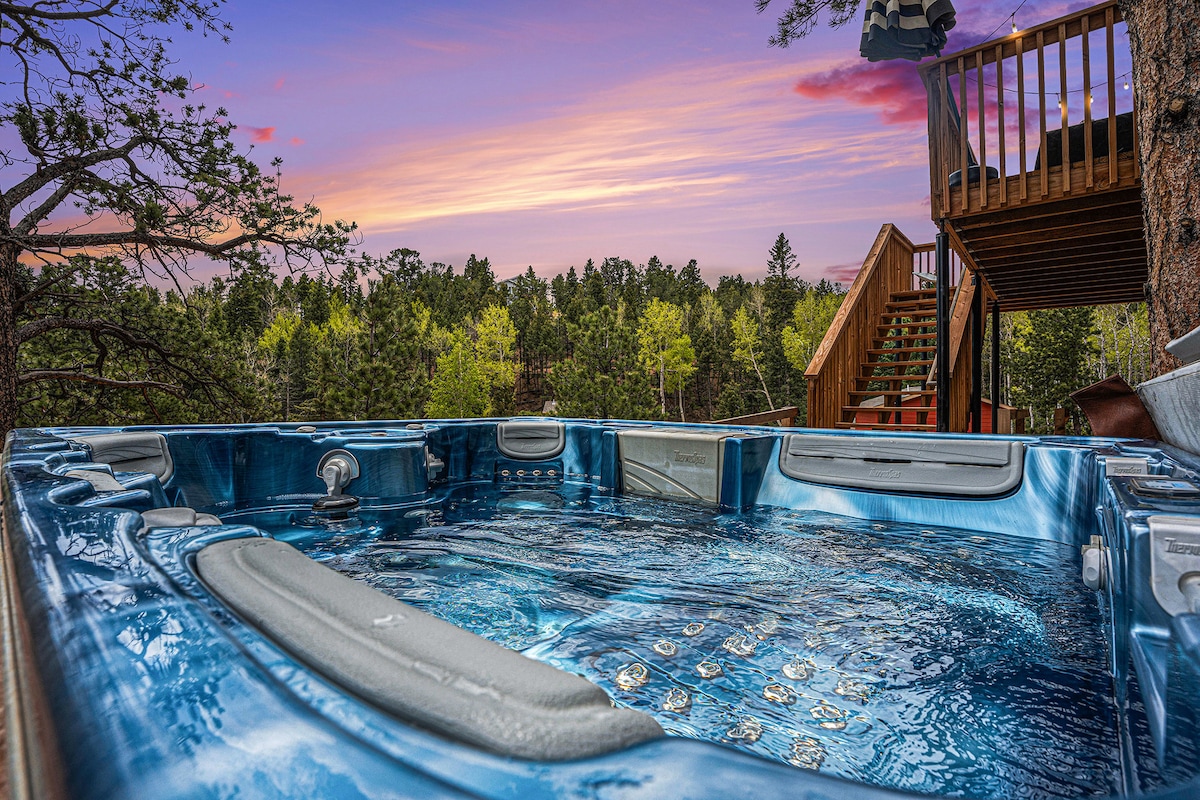 Bienvenue dans votre luxueuse retraite de montagne à Eagle Ridge ! Le salon est une superbe maison récemment rénovée de 1 400 pieds carrés située dans une propriété fermée de 43 acres avec vue panoramique sur Pikes Peak qui vous coupera le souffle. Avec un magnifique patio de 1 200 pieds carrés et un accès à des sentiers pédestres privés, cet espace offre tout ce dont vous avez besoin pour des vacances ou une retraite paisibles et rajeunissantes : une expérience de penthouse à l'hôtel au rez-de-chaussée. Le jacuzzi est rempli d'eau douce pour chaque voyageur.
