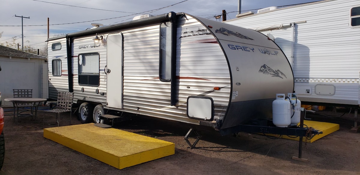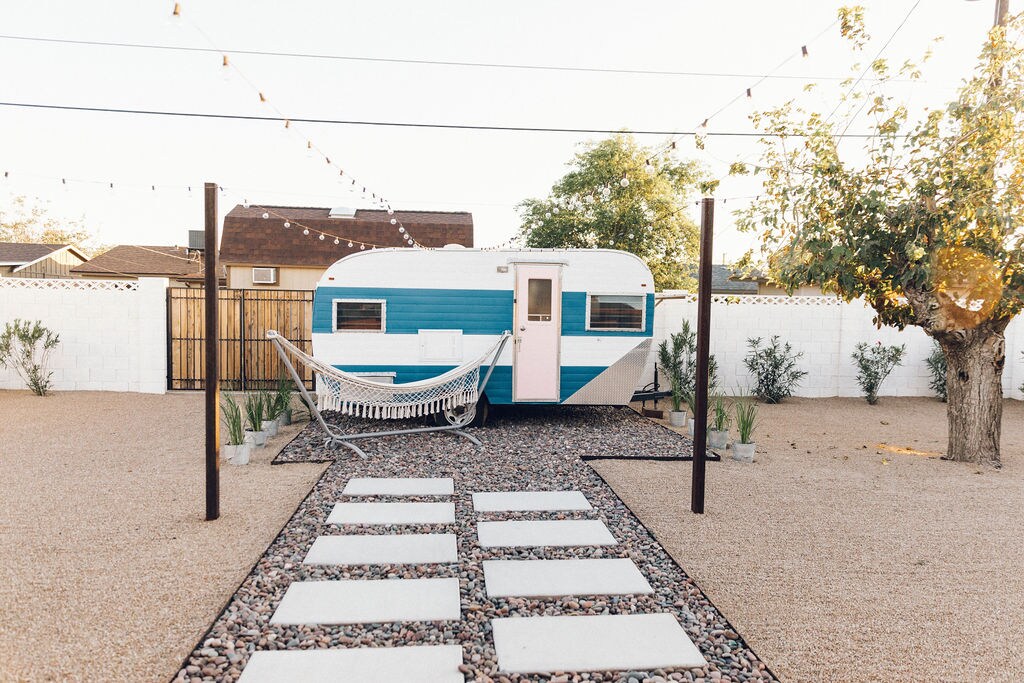 Classic, cozy camper located in the heart of the city with a fully equipped kitchen. Queen bedroom and a galley featuring a 4 bed bunkhouse. Half bath off the master can be made private with pocket doors. Living area includes a dinette, jackknife sofa, and a full kitchen. Private parking and gated entrance lead in to all the comforts of home. Minutes driving to local downtown, nightlife, arts and culture, ASU, Spring Training and hiking!