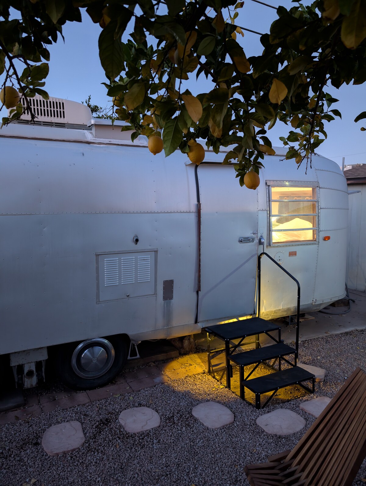À quelques kilomètres de l'ASU à Tempe, en Arizona, cet élégant Airbnb offre un séjour unique à proximité des meilleurs restaurants, des parcs luxuriants et des sites d'entraînement printanier. Découvrez le luxe moderne avec une touche de charme vintage dans notre Airstream Ambassador des années 1960 récemment rénové. Elle est entièrement équipée avec un lit confortable, une salle de bain privée et une baignoire relaxante. La propriété bénéficie d'un look contemporain, accentué par un foyer à gaz et un coin repas extérieur, parfait pour profiter des douces soirées de l'Arizona.