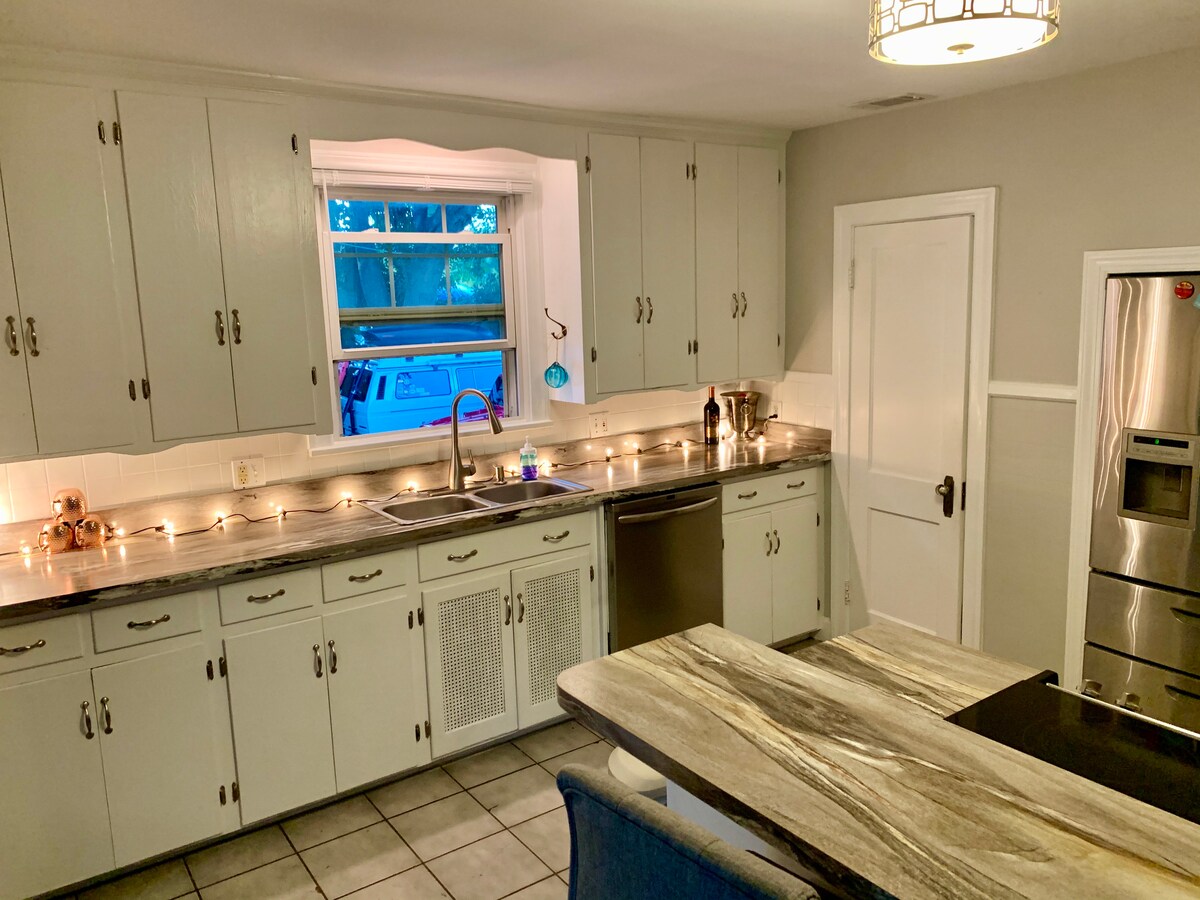 * ORGANISÉ PAR GABE ET SHANNON * Profitez de votre visite à Dunedin (et dans les environs) dans notre bungalow rénové sur mesure ! Construite à l'origine en 1918, cette maison a été soigneusement restaurée pour refléter notre communauté créative florissante. Une grande partie de la maison a été construite et décorée grâce aux compétences d'artisans locaux. Beaucoup de choses - de la terrasse avant aux meubles en passant par les assiettes mêmes dans lesquelles vous mangerez - sont des originaux fabriqués à la main. Ce n'est pas qu'un endroit où dormir. C'est une œuvre d'art vivante.