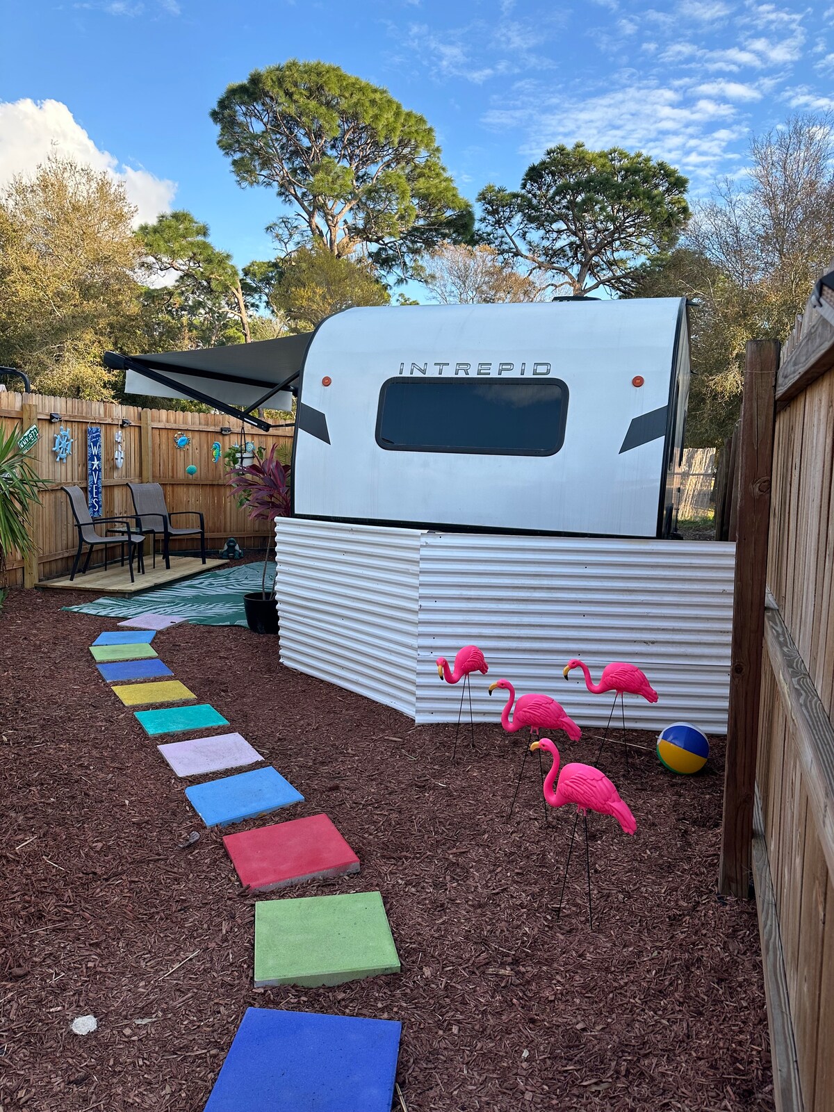 Cette retraite Airstream tout équipée se trouve dans une cour arrière privée et clôturée située dans le quartier Fossil Park de St. Pete. Le vaste complexe de Fossil Park est à 1 minute à pied et comprend 2 aires de jeux, des courts de pickleball, des courts de basket-ball, un skatepark, des sentiers pédestres et une piscine communautaire (ouverte en saison). C'est un quartier calme situé entre 2 rues animées qui vous mènent directement au centre-ville. Les plages du Golfe sont à 20-25 minutes en voiture et les plages de la baie sont à 10-15 minutes en voiture.