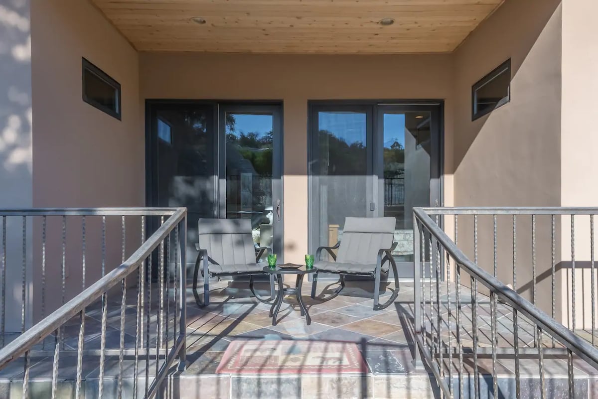 Belle casita haut de gamme avec entrée privée située dans un quartier calme. Keurig avec dosettes gratuites, Wi-Fi, Smart TV, câble, chaînes cinéma et climatisation centrale privée inclus. Patio avant entièrement rénové avec foyer et table de salle à manger à hauteur de bar juste ajoutée ! Profitez d'un verre de vin et détendez-vous sur le patio avant en regardant le coucher de soleil sur la montagne à côté du foyer. Nous acceptons les animaux de compagnie. Frais pour les animaux de 30 $ ; payez lors de votre séjour.