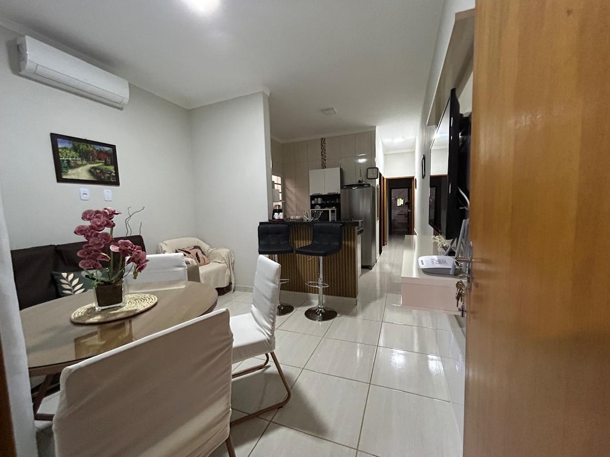 Appartement très confortable, bien aéré et lumineux. Avec un excellent emplacement, à seulement 2 minutes du supermarché, du centre de congrès, du lac, des bars et des restaurants. À côté du cinéma de Pirassununga. Équipé pour accueillir jusqu'à 4 personnes confortablement. La copropriété dispose d'une place de parking. Parfait pour ceux qui veulent la tranquillité