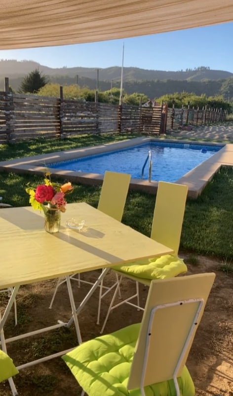 Si vous voulez un hébergement sur la route des vins de la vallée de Maipo, au Chili, cet emplacement est idéal, cabane privée dans une maison familiale située sur une ferme de 5 000 mètres carrés, accès aux services dont vous avez besoin, buanderie, piscine et jardins. Préparation des rôtis et des repas typiques, sur demande. Situé dans le village d'Alto Jahuel, à 38 km au sud du centre-ville de Santiago, mobilisation à la porte de la copropriété. Accès facile aux vignobles du secteur, même certains sont accessibles à pied.