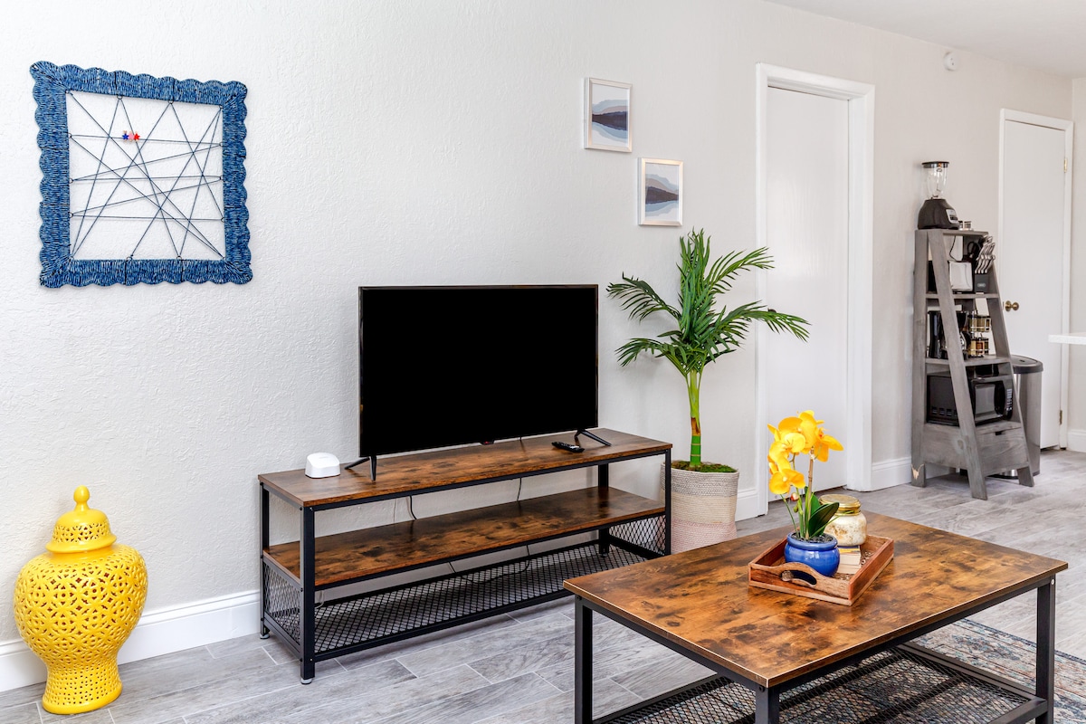 Carpe Otium #1 - Duplex Ă©lĂ©gant 1 chambre/1 salle de bain Ă seulement un pĂątĂ© de maisons de Railroad Square dans le centre-ville de New Port Richey. AccĂ©dez Ă pied aux restaurants, aux boutiques, Ă la vie nocturne et Ă la promenade du fleuve. RĂ©cemment rĂ©novĂ©e et nichĂ©e sous des chĂȘnes centenaires, cette retraite confortable offre des serrures intelligentes, une connexion Wi-Fi haut dĂ©bit et deux tĂ©lĂ©viseurs avec Netflix et Prime. Profitez de tout le confort de la maison dans un endroit paisible et central.