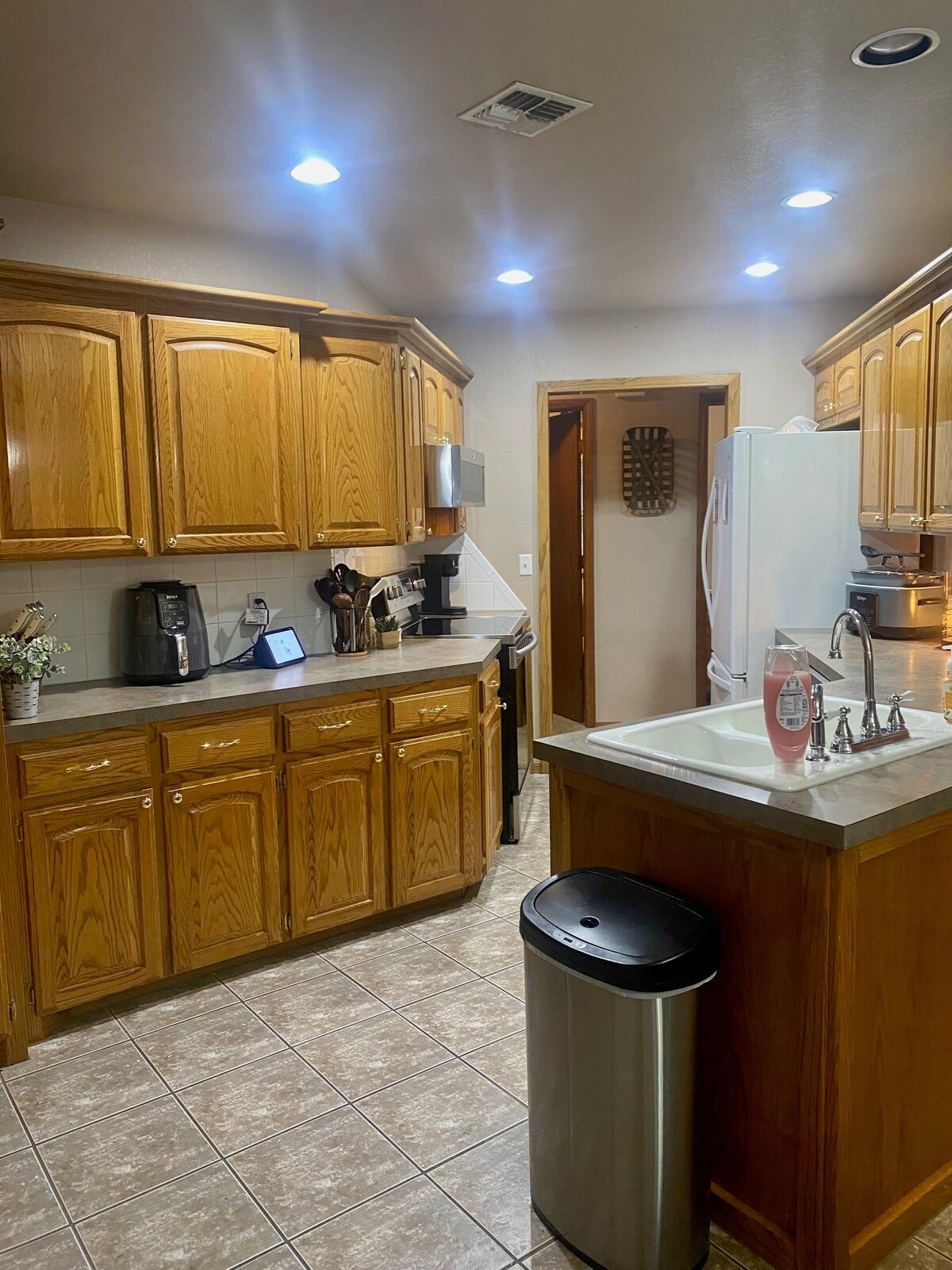 Vous adorerez vous asseoir sur le porche et regarder les piétons, les cyclistes, etc. de l'autre côté de la rue. Séjour ouvert sur le coin repas et la cuisine. La chambre principale dispose d'une douche à l'italienne. Également une salle de bain complète dans le couloir. Wifi et télévision à écran large en continu. Beaucoup d'espace dans le placard. Cuisine entièrement meublée. En face d'une belle piste de marche, du terrain de baseball Mike Deak McAlester HS et des terrains de football. Rue bien éclairée. Petit garage et stationnement supplémentaire dans l'allée.
