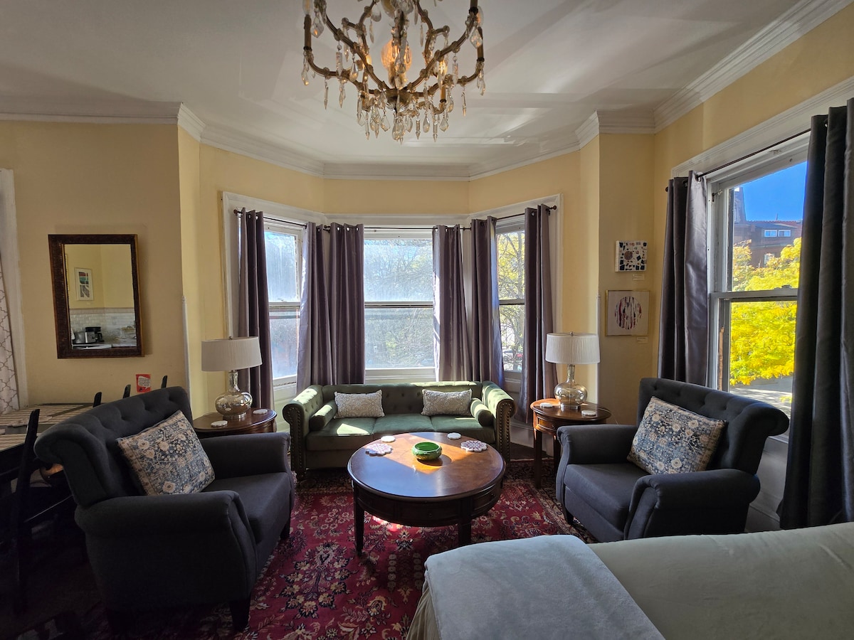 Profitez du feuillage d'automne dans les Berkshires, jusqu'au début du mois de novembre ! Une spacieuse chambre privée de deux chambres au Small Mansion de Chase Hill Estate à North Adams. À seulement 3 minutes du MASS MoCA, 5 minutes des restaurants du centre-ville et 10 minutes du Williams College ou du Clark. Restaurée de manière fantaisiste (oui, Wi-Fi rapide et excellente pression de l'eau !) et faisant partie de @chasehillartistretreat. ✨ Votre séjour soutient des résidences pro bono pour des artistes réfugiés et immigrés.