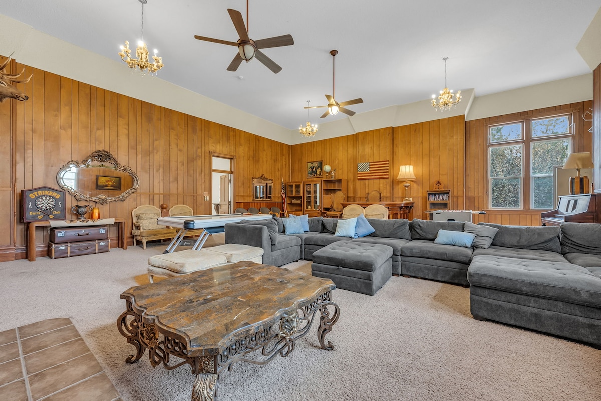 Le palais de justice historique spacieux s'est transformé en une réunion de famille et un grand paradis événementiel. Beaucoup d'espace pour tout le monde, adapté aux enfants avec beaucoup d'aventures qui attendent. Cuisine et grand patio extérieur avec foyer et pelouse pour jouer à des jeux dont un filet de volley-ball. Deux lacs à proximité pour la pêche et la baignade et des kilomètres de sentiers de VTT. Vue panoramique en haut de la montagne où vous pouvez faire du VTT depuis le jardin. Également une bibliothèque et une salle de jeux avec télévision intelligente pour s'amuser et se détendre.